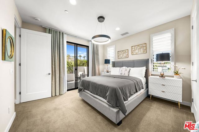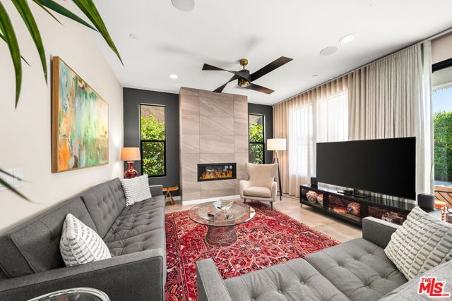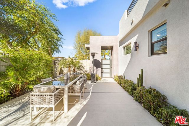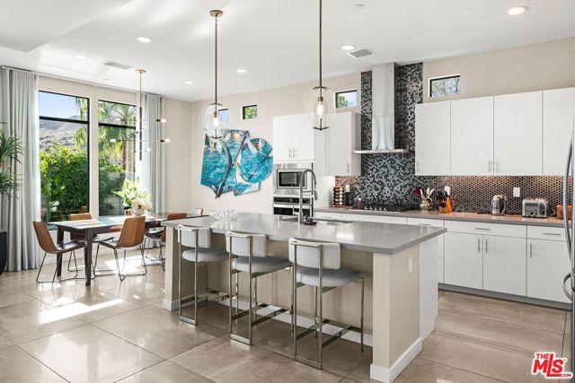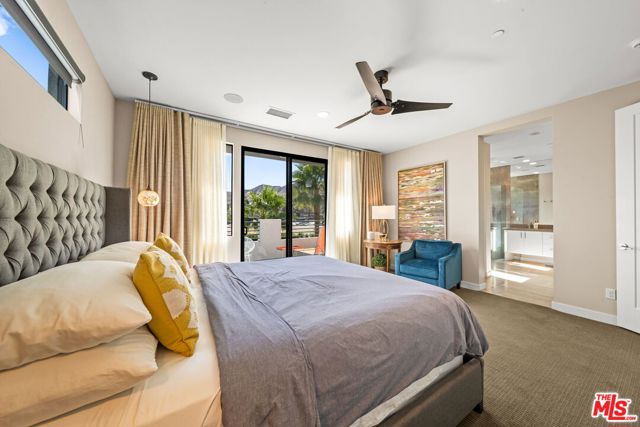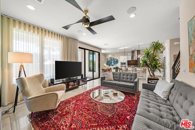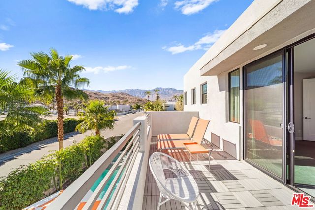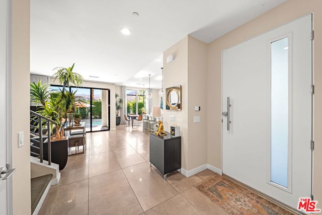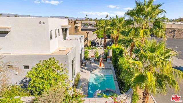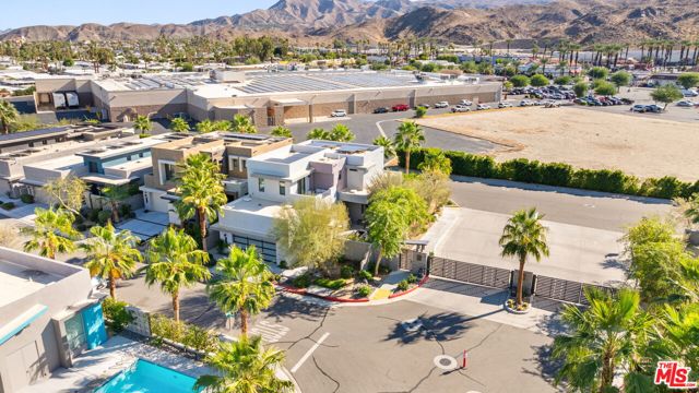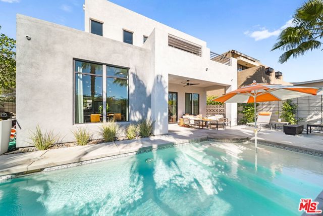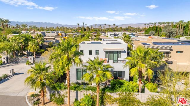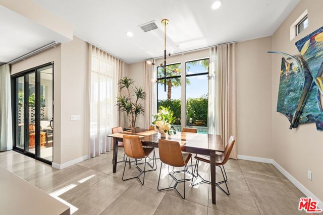 Welcome to the 67655 Chelsea Road inside the District East and one of the largest lots in the community featuring the Tribeca floor plan. Included with this former model unit are three bedrooms and three bathroom and nearly 2,100 sq. ft. of living space, in-ground pool and spa, owned solar, fireplace, and a large 2 car garage with ample storage. There are four distinct outdoor living spaces which include an outdoor fire feature, fountain, dining areas and offer spectacular mountain views. This move-in ready home features an open concept living space, distinct dining area, breakfast bar, quartz countertops, stainless steel appliances, ceramic tile flooring on the primary level and upstairs in the bathrooms and laundry room; all bedrooms are carpeted. There is a large bedroom and shared bathroom with shower on the ground floor, and two bedrooms with private bathrooms upstairs. The living room is highlighted by telescoping doors which open to the pool and offer the new owner that indoor/outdoor living ideal. The home is an end unit home and is also located within a pedestrian friendly distance of many shops, restaurants and grocery stores. In addition, the community includes a dog park, fitness & community center, pool and spa. This is a truly unique home inside District East and we look forward to seeing you!