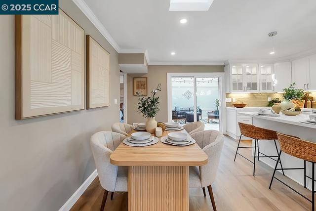 A SPECIAL SAN FRANCISCAN - ENJOY TRANQUILITY! This gorgeous remodel is an end unit sidling up to open space with views in a 1-row, 4-unit only, single-story building; nobody above or below and only 1 shared wall. Two steps & a slate walkway through a private courtyard lead past a comfy seating area to the beautiful front door where interior light welcomes you through the high cut-glass window. It's a first peek at the tasteful upgrades to come, with all the bells & whistles you've come to expect from a sophisticated remodel and then some: two skylights and two side windows looking out into trees from the living room & atrium are just some of the many extras. Everything is bright, new and first class, including a 2nd bath with built-in cabinets, the laundry closet with full-size LG washtower, the re-configured kitchen with it's breakfast island & the living room with fireplace and huge TV. Lights twinkle overhead in the big atrium in time for the holidays or your first summer party. Come and enjoy finding yourself all there is to discover in this beautiful home! One word about Rossmoor, Walnut Creek's premier senior community with its plethora of amenities: it offers a lifestyle that over 7000 members have come to appreciate and you can learn all about it at Rossmoor.com.