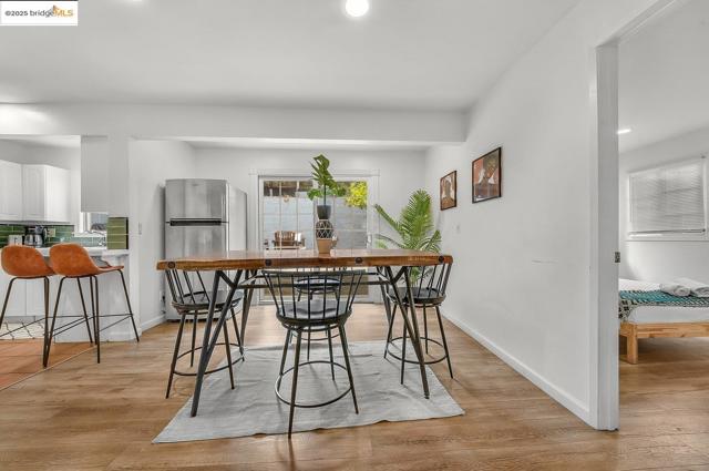 Discover this beautifully maintained gem — A true Oakland starter home. This spacious 3-bed, 2-bath bungalow sits on a generous 5,200 sqft lot in the Harrington neighborhood, featuring hardwood floors, an open-concept living/dining area, tasteful updates throughout, and a detached garage. Just minutes from Peralta Hacienda Historical Park and the vibrant Fruitvale District, with easy access to the 580 and 880 freeways. This home offers the perfect blend of charm, comfort and convenience.