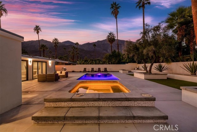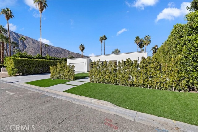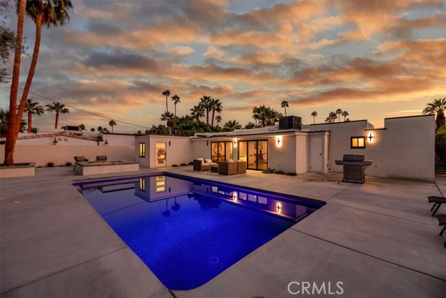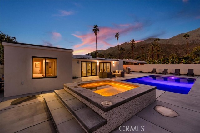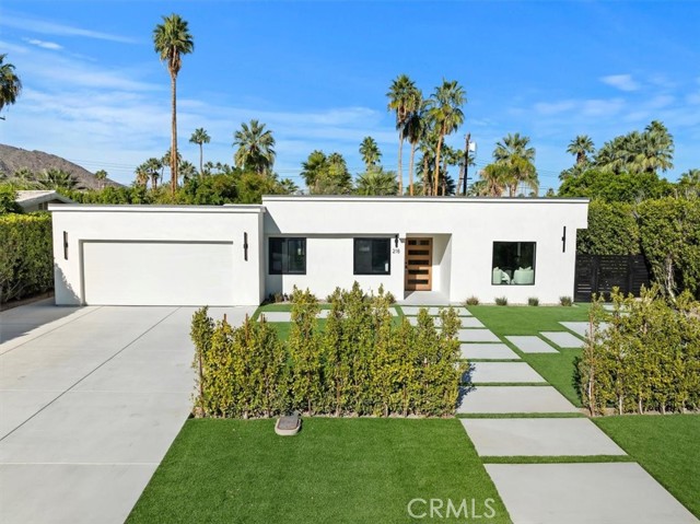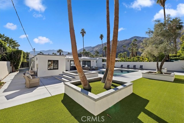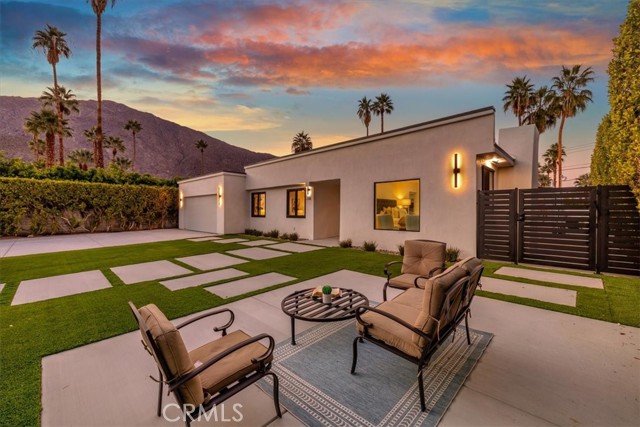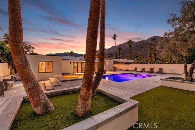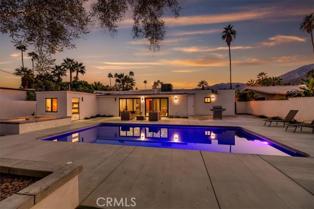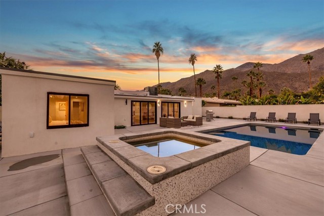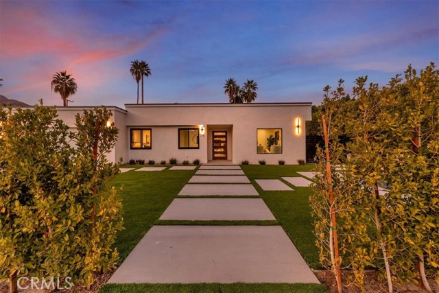 Experience modern luxury in this fully reimagined single-story home in the desirable Tahquitz River Estates. Situated on a generous 9,583 sq ft flat lot, this 4-bed, 3-bath, 2,554 sq ft residence was taken down to the studs, reconfigured with an open-concept layout, and rebuilt with full City permits, including all-new plumbing, electrical, insulation, drywall, HVAC, roof, windows, doors, flooring, fixtures, appliances, hardscaping, and landscaping. A sleek modern entry leads into an expansive living and dining area with oversized sliders showcasing stunning mountain views and true indoor/outdoor flow. The showpiece chef’s kitchen features a massive waterfall island, custom cabinetry, premium quartzite slab counters, full slab backsplash, stainless steel appliances, double ovens, a 6-burner range, wine/beverage storage, and designer lighting. The primary suite is a private retreat with vaulted ceilings, a modern fireplace, picture-window views, a walk-in closet, and a spa-caliber bathroom with an oversized glass shower, dual rainheads, skylight, floating vanity, and premium tilework. Three additional bedrooms offer exceptional versatility, including two en-suite rooms perfect for guests, multigenerational living, or home office needs. All bathrooms feature frameless glass showers, LED-lit mirrors, and floating vanities. The backyard delivers the ultimate Palm Springs resort experience with a newly renovated inground pool & spa, expansive patios, modern hardscaping, privacy walls, mature palms, and unobstructed desert hill and mountain vista views; ideal for entertaining or peaceful sunset evenings. Located in the coveted Tahquitz River Estates, this home offers quiet streets, lush palms, and unbeatable proximity to downtown. Just minutes from world-class dining, boutique shopping, art galleries, spa resorts, golf, and scenic hiking trails, the location blends serenity with convenience. Whether you seek a full-time residence, a weekend sanctuary, or a high-performing vacation rental, this property delivers the luxury and lifestyle buyers want. Move-in ready, fully renovated, and impeccably designed. Tour this exceptional Palm Springs retreat today.
