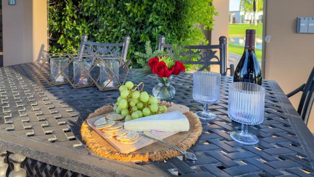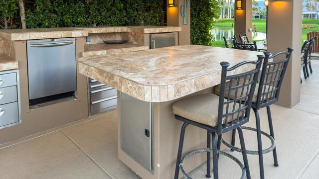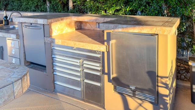 Outdoor Resort Indio is a Class A Motorcoach resort. This is an RV lot. Beautifully upgraded and exceptionally private, this RV lot at Outdoor Resort Indio offers luxury outdoor living with stunning golf course, lake, and mountain views--and is just a very short walk to the clubhouse and all its amenities.A spacious outdoor kitchen features tile counters, stainless steel appliances, oven, BBQ, countertop burner, double sink, new fridge, dishwasher, hot water, garbage disposal, and a generous kitchen island/bar.The impressive L-shaped Alumawood pergola includes three ceiling fans, three radiant heaters, extensive lighting, sconces, and manual shades for year-round comfort. A surfaced RV pad matches the kitchen and ties the space together.Enjoy a built-in entertainment center with roll-up TV door plus quality furnishings: a dining table with six chairs, two bar stools, and two sofas with a fire table and end tables. Custom covers for the kitchen and furniture.With its north-facing coach orientation, privacy, premium views, and unbeatable proximity to the clubhouse, this lot is ready to enjoy from the moment you arrive.