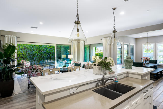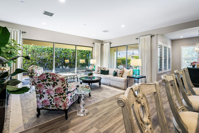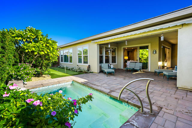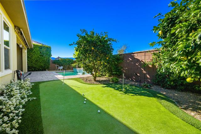 Welcome to Trilogy Polo Club, This beautifully appointed Ethan Allen designer residence is offered furnished and features the highly desirable Incantara floor plan, encompassing three bedrooms, two and a half baths, a versatile Smart Spacea flex room with upgraded cabinetry and built-in desk, and a spacious three-car garage. The open-concept design is enhanced by dual rolling walls of glass in the great room, seamlessly blending indoor and outdoor living and flooding the home with natural light. The chef-inspired kitchen is both elegant and functional, showcasing a generous quartz island, designer pendant lighting, custom cabinetry, a striking backsplash, and premium stainless-steel GE CafA(c) appliances. An exceptional dining room provides a sophisticated setting for memorable gatherings and special occasions. The primary suite is a tranquil retreat, offering a spa-like bath with upgraded dual vanities, designer mirrors, and a spacious walk-in closet. Step into your private backyard oasis, professionally designed by Teserra, featuring a stunning spool with water feature, a three-hole putting green, and expansive wraparound covered patios. An electric awning and misting system ensure year-round comfort, where mountain views and rear privacy create a peaceful and luxurious setting. Meticulously upgraded and impeccably maintained, this exceptional home shows better than a model and reflects the seller's unwavering attention to quality and detail. Offering the ultimate in resort-style living.