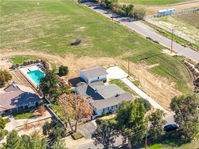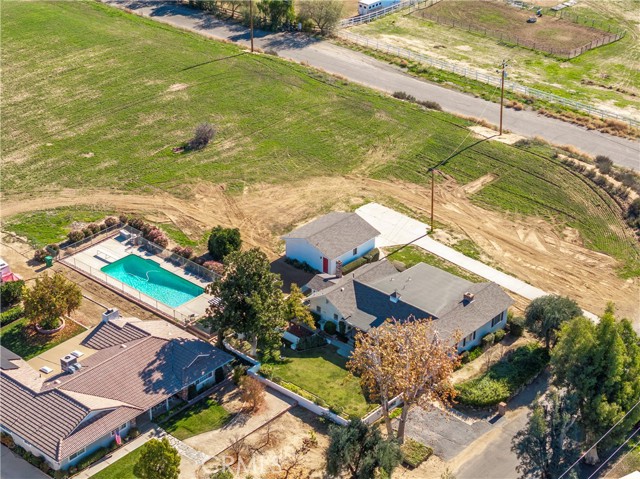 Meticulously maintained by the original owner, this well-built custom home offers three bedrooms and two bathrooms, showcasing timeless craftsmanship and thoughtful design throughout. Newer windows enhance energy efficiency, while the formal living and dining rooms feature vaulted ceilings, built-in bookshelves, and a welcoming fireplace—perfect for both everyday living and elegant entertaining. The open-concept kitchen and family room are filled with natural light and designed for connection and comfort. The kitchen offers a breakfast bar, double oven, gas cooktop, dishwasher, informal dining area, and beautiful views of the covered patio and enclosed grassy yard. Large windows frame picturesque mountain views, creating an ideal setting to enjoy morning coffee or an evening beverage while watching breathtaking sunsets. The spacious family room flows seamlessly to an additional patio, providing an inviting space for gatherings with family and friends. The private primary suite features two closets, a Hogan-style fireplace, ceiling fan, wood flooring, and direct access to the exterior. The primary bathroom includes a combination tub and shower with newer countertops. Two additional bedrooms are generously sized and thoughtfully positioned for privacy. The updated guest bathroom features a walk-in shower, and window coverings are installed throughout the home. Outdoors, the pool area is separately fenced for safety and privacy. A detached two-car garage with an additional bathroom adds convenience and flexibility. Situated on over an acre of land, this exceptional property offers ample space for RVs, recreational toys, or future possibilities—making it the perfect place to turn your dream into reality.