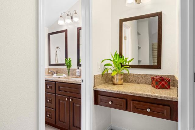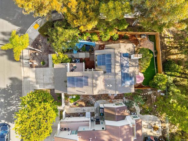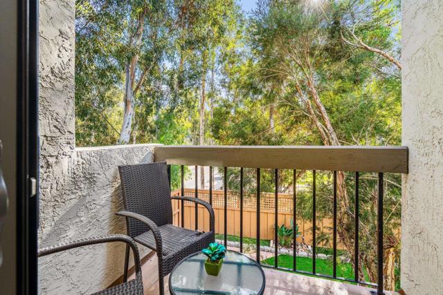 Tucked beside the peaceful Shepherd Canyon, this detached Villa Antigua residence offers the rare feeling of living within nature—without giving up central San Diego access. Set on a large corner lot and surrounded by mature trees and canyon views, the home gives the felling of living in a tree house—elevated and quietly removed from the pace of the city. A waterfall and pond at the entry set a peaceful tone, while the secluded backyard ifsframed by parkland. Hiking and walking trails are just moments away, making it easy to step directly into nature, yet freeway access remains effortless for commuting in any direction. Inside, the home has been thoughtfully upgraded to support comfortable, modern living. The upgraded kitchen features granite countertops, LG appliances, pantry, and a breakfast nook with bright windows looking out on the walled-in front yard. The primary suite is its own sanctuary, complete with a fireplace, walk-in closet, private view balcony, and a remodeled bath with dual sinks and vanity with granite counters. Both the primary bedroom and the spacious secondary room enjoy private balconies, further reinforcing the indoor-outdoor connection. The oversized second bedroom has been used as a TV room and offers exceptional flexibility for work-from-home, guests, or multi-purpose living. Behind the scenes, the home delivers peace of mind as well. Recent upgrades include all new dual-pane windows, an owned Enphase solar system, new electric central heating & air with a high-efficiency heat pump, newer water heater, and updated fencing to preserve privacy throughout. Energy costs are minimized while comfort is maximized. This is a home for buyers who value nature, privacy, and practicality—who want to feel tucked away in something special, yet remain close to everything that matters.