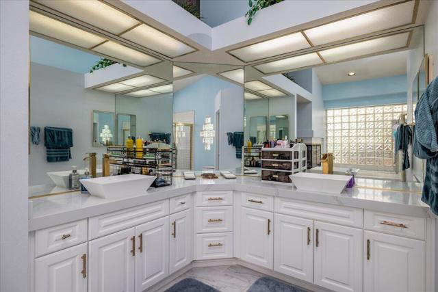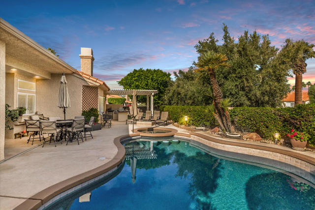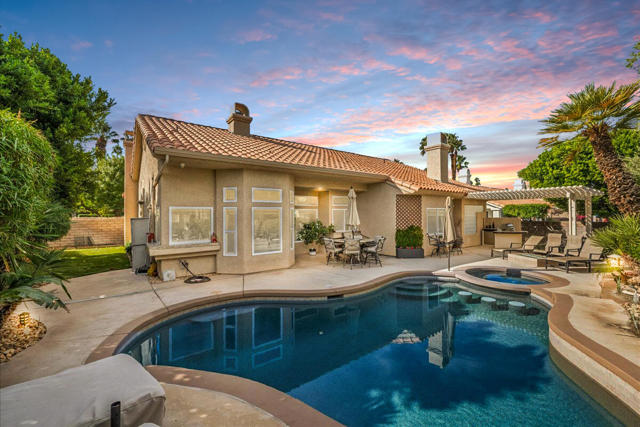 First time been on the market in 36 years. This remodeled exceptional single story pool home is tucked within The Links, a private enclave inside the prestigious Desert Falls Country Club, offering refined design paired with true resort-style living. The residence features four bedrooms that is ideal for guests or multigenerational living. Extensive high-end upgrades include 25 fully paid solar panels paired with a 24 kW backup generator delivering both luxury and energy efficiency. The stunning remodeled kitchen showcases custom cabinetry, slab granite countertops and a beautifully integrated stainless steel refrigerator, while a sophisticated bar with slab granite, custom cabinetry that enhances entertaining. Charming porcelain tile flows through the main living areas of kitchen, dining and living room. Guest bedrooms have upgraded laminate wood flooring. Plantation shutters throughout providing timeless elegance. The primary bath is a true retreat, highlighted by quartz surfaces, custom above counter custom sinks, and a walk-in shower. Outdoors, the expansive backyard is an entertainer's dream, featuring an outdoor BBQ island, large saltwater pool and spa with LED lighting, and specialty lighting throughout the home and landscape, all framed by lush custom landscaping. Three fireplaces add warmth and ambiance throughout the home, while a spacious three-car garage completes the property. Homeownership includes WiFi and cable, tennis, pickleball, a state-of-the-art fitness facility, and 24-hour guard-gated security, with Desert Falls Country Club offering flexible pay-as-you-play or membership options. Perfectly situated mid-valley with easy I-10 access, this home is moments from dining, shopping, and everyday conveniencesa"and just minutes from the renowned Acrisure Arena, home to the Coachella Valley Firebirds and world-class entertainment.