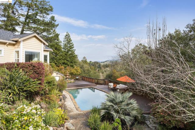 Glorietta Estate with Pool and Breathtaking Mount Diablo Views! Tucked away on nearly 1/2 an acre in one of Orinda’s coveted neighborhoods, this custom-built home offers sweeping views, Luxurious Poolside Living, and a timeless design. Built in 1992 and meticulously maintained by one family, this 4++ bedroom home is ready for its next chapter. Step inside to vaulted ceilings with soaring windows that invite natural light to flow effortlessly. The open-concept layout was designed for both everyday comfort and elegant entertaining. The heart of the home is the chef’s kitchen complete with a dramatic granite island, large pantry, eat-in breakfast area, and access to the outdoor patio for al fresco dining. There are 2 bedrooms downstairs and 2 plus a bonus bedroom or rec room upstairs. This home offers the perfect versatile design with 2 living rooms, a formal dining room, an office, and a wet bar. The primary suite is a true retreat featuring dual walk-in closets, a spa-like shower and bath, sauna, and a connected nursery or office. 4 sets of doors open out to the Backyard Paradise with a Recently Resurfaced Pool, sun deck, and a lush landscaped garden. New Roof in May 2025. Only minutes from Glorietta Elementary, Meadow Swim & Tennis Club, Orinda Square, and 1.3 miles from BART.