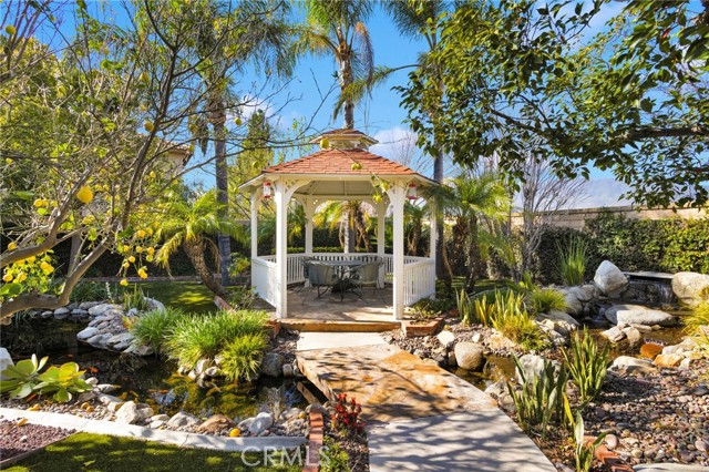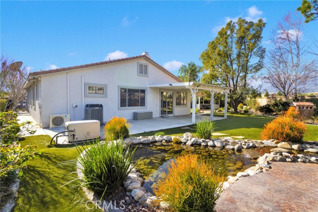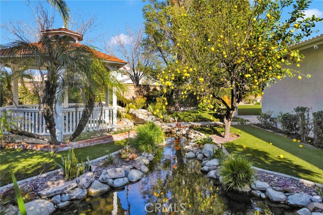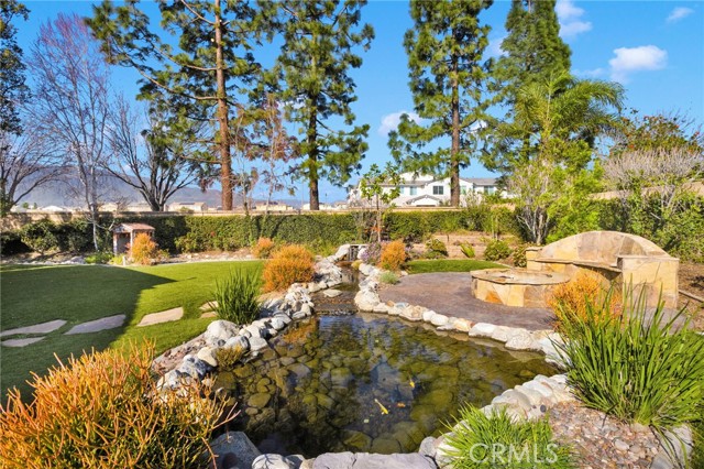 Welcome to this rare single-story home in the highly desirable Sierra Lakes community of Fontana, just minutes from the beautifully maintained Sierra Lakes Golf Club. Meticulously cared for and thoughtfully designed, this home offers a combination of comfort, functionality, and outdoor serenity that is hard to find. Situated on a larger-than-average lot, the property features a 3-car garage and a well-designed floor plan with spacious living areas and an open, light-filled kitchen ideal for everyday living and entertaining. The kitchen offers ample cabinetry, generous counter space, and a large center island that flows seamlessly into the dining and living areas. The backyard is truly one of a kind, showcasing a custom koi pond with tranquil water features, mature landscaping, and a charming gazebo that creates a peaceful, private retreat—perfect for relaxing mornings, entertaining guests, or simply enjoying the outdoors. This yard was clearly designed with care and intention and sets the home apart from others in the area. Inside, the home reflects pride of ownership throughout, with clean lines, neutral finishes, and well-maintained spaces. Bathrooms include thoughtful upgrades, including accessibility-friendly features, while the single-level layout offers ease and convenience rarely available in this neighborhood. Located near parks, shopping, dining, and freeway access, this well-kept Sierra Lakes residence offers the best of suburban living with a resort-style backyard—an exceptional opportunity for buyers seeking space, privacy, and a truly special outdoor setting!