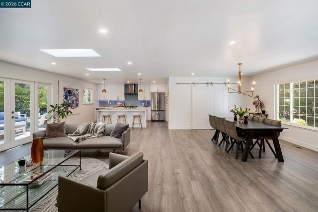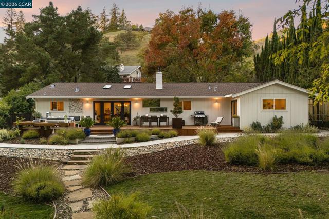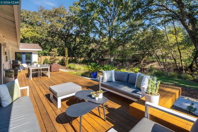 1886 Green Valley Road is a completely renovated single story 4-bed, plus den/office, 2-bath home, where mornings begin with birdsong, sunlight filtering through the leaves, and a gentle connection to nature just beyond your windows. This home sits on a generous almost 1/2 acre lot with a creekside setting. The chic, light filled open floor plan features new LVP flooring throughout, a stunning kitchen with quartz countertops and oversized island with seating, and beautifully updated bathrooms. The family room has a new fireplace insert and French doors that open to the backyard, creating a seamless indoor/outdoor living space featuring a newer redwood deck, gardens, lawn area, mature oak trees and facing a peaceful creek - the perfect place for morning coffee or dining under the stars. Other updates to the home include new fencing, HVAC and a Tesla backup battery. This home offers a blend of modern luxury and natural surroundings with Macedo Ranch and Mt. Diablo State Park approximately 1 mile away offering access to hiking, equestrian and biking trails. Award-winning schools are also in close proximity to this private, upscale Alamo home.