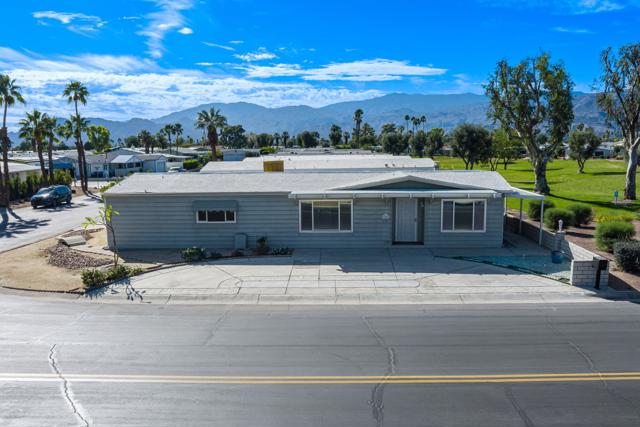 Experience the best of desert living in this desirable Palm Desert Greens Country Club home, showcasing beautiful mountain views and outstanding private outdoor space. Ideally positioned on a corner lot along the greenbelt, this spacious 2-bedroom, 2-bathroom residence offers a peaceful setting with added openness and scenic surroundings. A circular front driveway provides easy access, while an additional private driveway enhances convenience. The large, enclosed carport offers abundant covered parking and extra storage space. Inside, the bright and inviting living room features a cozy fireplace, perfect for relaxing on cool desert evenings. The drywalled interior and dual-pane windows add both comfort and energy efficiency throughout. The kitchen is thoughtfully updated with attractive finishes, generous cabinetry, and ample workspace. An interior laundry area adds everyday practicality. One of the home's most impressive features is the expansive private enclosed patio, an ideal space for entertaining guests, unwinding in peace, or simply taking in the stunning mountain views. Located within Palm Desert Greens Country Club on the greenbelt, residents enjoy access to resort-style amenities including golf, a clubhouse, pools, fitness center, and a vibrant social scene all just minutes from shopping, dining, and everything Palm Desert has to offer. Move-in ready and perfectly situated, this home offers comfort, scenery, and an exceptional lifestyle opportunity in one of the desert's premier 55+ communities.