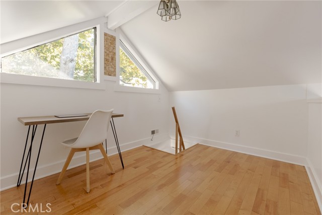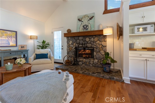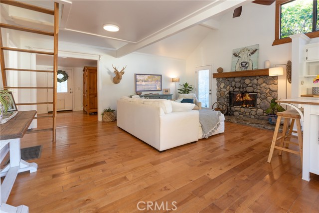 This creekside canyon charmer is a beautifully remodeled home that blends modern upgrades with cozy rustic charm. Enter from the front deck overlooking the tranquil creek and garden. The open floor plan is highlighted by an inviting living room fireplace, perfect for creating a relaxing ambiance. The luxurious remodeled bathroom features a walk-in shower, custom tile, and storage. A unique loft space offers additional space for an office, art studio, workout, or sleeping area. A fully enclosed back yard provides a quiet ambiance, and has additional storage and a wooden deck. The verdant, creekside garden includes a variety of fruit trees including a Hostas Avocado. The convenience of downtown Silverado is just a short stroll away, making it easy to get the mail, grab a coffee at the Silverado Kitchen and Market, attend a lively taco Tuesday at the Cafe, or simply greet neighbors and friends. Silverado is a throwback to more gentle times, yet only minutes from all that Orange County has to offer.