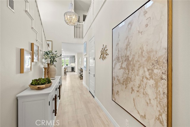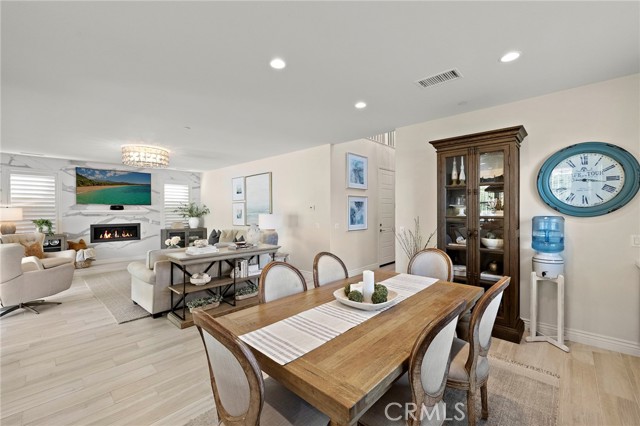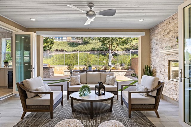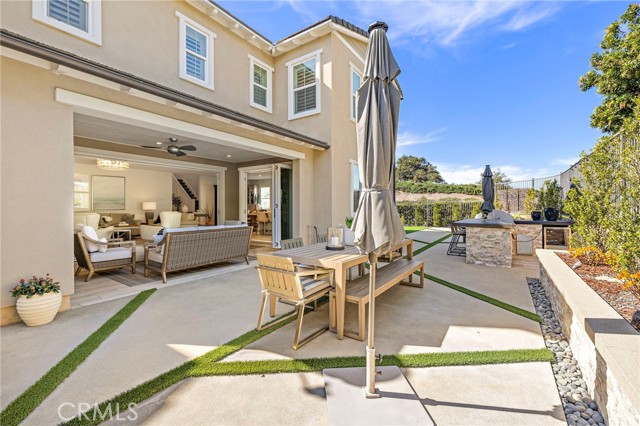 What truly sets this home apart is its breathtaking mountain views, visible from nearly every window and changing beautifully with the seasons from snow-capped peaks to serene natural scenery. Situated at the quiet end of the street, the home offers exceptional privacy and a peaceful atmosphere. This premium corner lot is ideal for entertaining- host gatherings and parties without noise concerns, while enjoying expansive backyard privacy and stunning sunset views. The backyard has BBQ island with polished concrete counters, BBQ and brand new refrigerator, and upgraded 30' turf lawn ready for a pool. With over $250,000 in upgrades in this home it effectively offsets the cost of future landscaping or a pool. Dual Bi-folding doors open up to create a large living space continuing the wood look flooring with linear stone fireplace media wall. Step inside to a modern coastal living retreat, custom designed for both comfort and entertaining. Features include waterfall quartz countertops, Chef’s kitchen with a striking backsplash that flows seamlessly from the kitchen into the dining area, Farm Sink, soft dove gray shaker cabinets with soft close hinges and pull out drawers, wine refrigerator and commercial style hood. All florescent lighting has been upgraded to dimmable LED recessed lighting and extended built-in closets through out the house for organizing. Built-in dining buffet with lighted glass front cabinets, upgraded high end chandeliers in your Entry way and Living room and easy care kid/pet friendly wood-look flooring. Downstairs bedroom suite with full bath with marble wall shower plus a powder bath for guests for convenience. Upstairs are two secondary bedrooms, one with private view balcony to enjoy the sunset, mountains and ocean views. Each boasts a private bathroom with upgraded flooring, shower walls, and quartz countertops. Large bonus room for upstairs entertainment or 5th Bedroom option. Primary Bedroom with gorgeous Capiz chandelier & huge walk-in closet with custom organizers. Ensuite bath with upgraded lighting, dual sinks, upgrade quartz countertops, shower with marble wall backsplash and dual shower heads for steam showers. Enjoy the spa experience with an extra large bathtub behind the glass doors for a warm bath retreat. Upstairs laundry room with designer tile and W/D with gas dryer. With many more exceptional upgrades and access to incredible resort living-this is more than a house-it's the home you've been waiting to find.