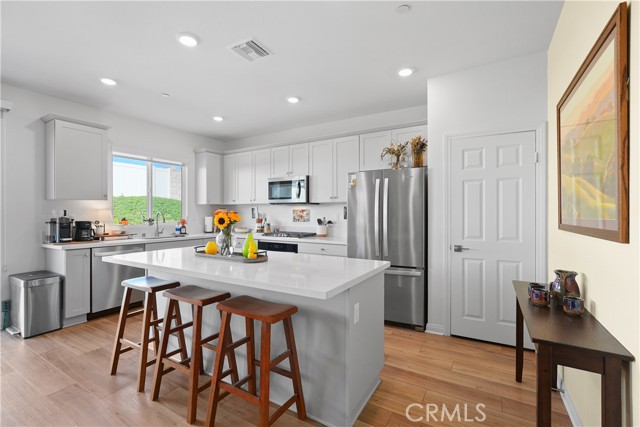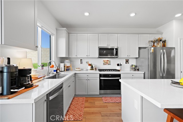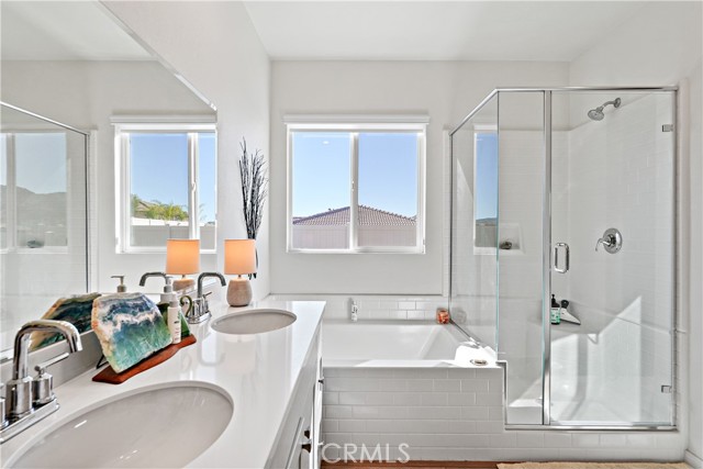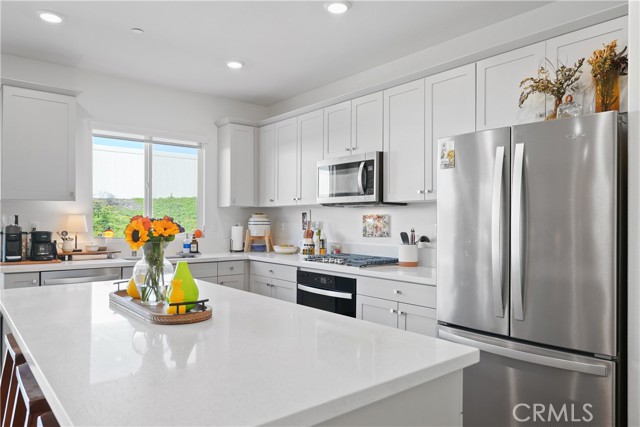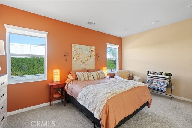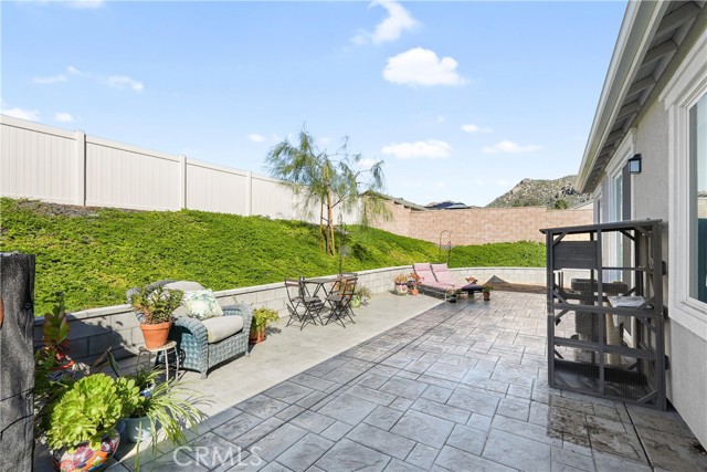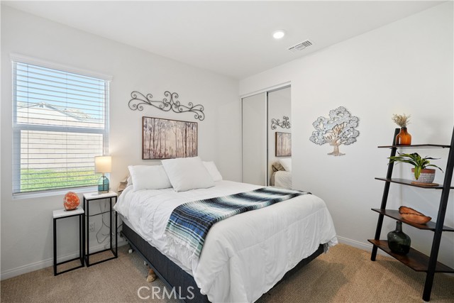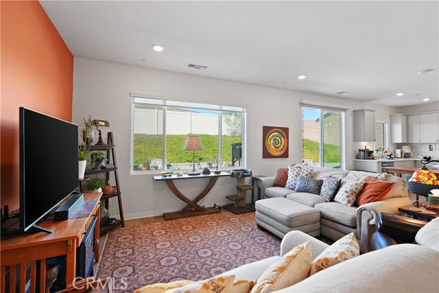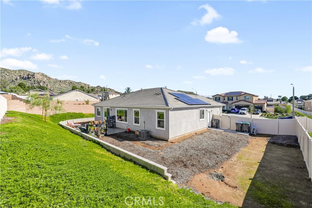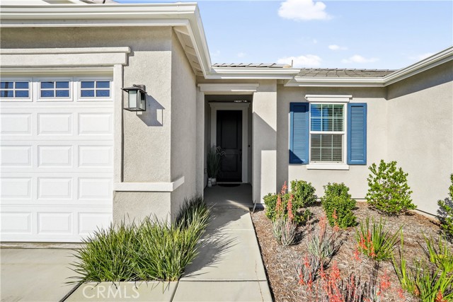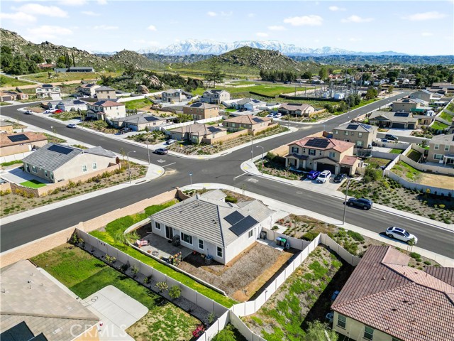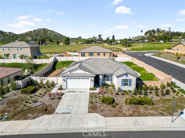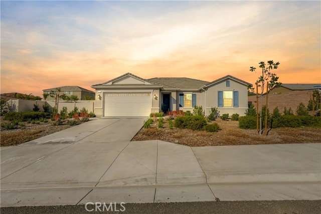 Built in 2023, this beautifully maintained single-story home offers 4 bedrooms and 2 bathrooms on a spacious 10,000+ sq ft corner lot in Moreno Valley. A welcoming foyer entry leads into an open-concept layout featuring recessed lighting and dual pane windows throughout the home, a large kitchen island, and a bright living space ideal for everyday living and entertaining. The privately separated primary suite includes a spacious bathroom with a separate soaking tub and glass-enclosed stand-up shower, along with a large walk-in closet, providing comfort and privacy. The flexible floor plan also offers potential for multigenerational living. Exterior highlights include a 4-car driveway, added rain gutters, paved front porch, landscaped garden barrier, and a paved open back patio perfect for outdoor seating and entertaining. The expansive lot offers potential RV parking and ample outdoor space. The home includes fully purchased solar and all green energy appliances, with current utilities reported at approximately $30 per month. Upgrades are already included in the purchase price, providing move-in-ready convenience and exceptional value. Conveniently located near shopping, dining, schools, and commuter access.