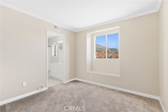 Welcome to 10035 Whitewater Road, nestled in the highly desirable Hidden Springs neighborhood of North Moreno Valley. Located on a quiet cul-de-sac in a non-HOA community with a low tax rate, this home offers comfort, space, and beautiful surroundings. As you arrive, you’ll immediately notice the manicured landscaping, lush grass, and freshly painted exterior that create inviting curb appeal. Step inside to soaring ceilings, large windows, light neutral paint, and abundant natural light. The spacious layout features a generous living room and family room, highlighted by a modern chandelier and an open, airy feel. The updated kitchen offers granite countertops, ample cabinetry, recessed lighting, and views of the expansive backyard. Adjacent to the kitchen, the family room includes tile flooring and a cozy fireplace — perfect for relaxing. Downstairs, you’ll find a bedroom and full bathroom, ideal for guests or multi-generational living. Upstairs features three additional bedrooms, including two connected by a Jack-and-Jill bathroom — a functional setup perfect for maximizing space. The primary suite is generously sized, complete with a walk-in closet and an updated bathroom featuring a modern vanity and upgraded shower. Crown molding accents some of the bedrooms, adding an elegant touch. The backyard is a standout feature, backing to a greenbelt with no neighbors behind you. Enjoy the serene views from the beautifully stamped concrete patio with wrought iron fencing — perfect for taking in nature and the mountain scenery. There’s also a side dog run and an updated vinyl fence on one side for low maintenance. An extra-large driveway provides additional parking space. Hidden Springs is known for its scenic mountain and valley views and proximity to the Box Springs Nature Reserve hiking trails. The home is conveniently located near highly rated elementary schools and within walking distance to the local junior high and high school. Shopping and freeway access are just minutes away. This move-in ready home truly checks all the boxes.