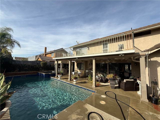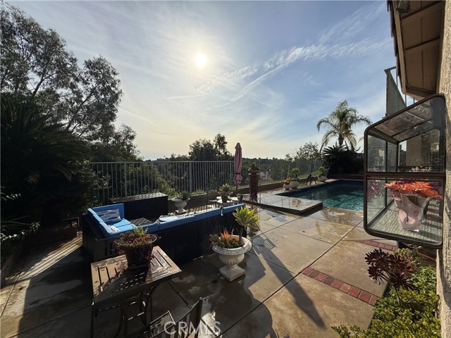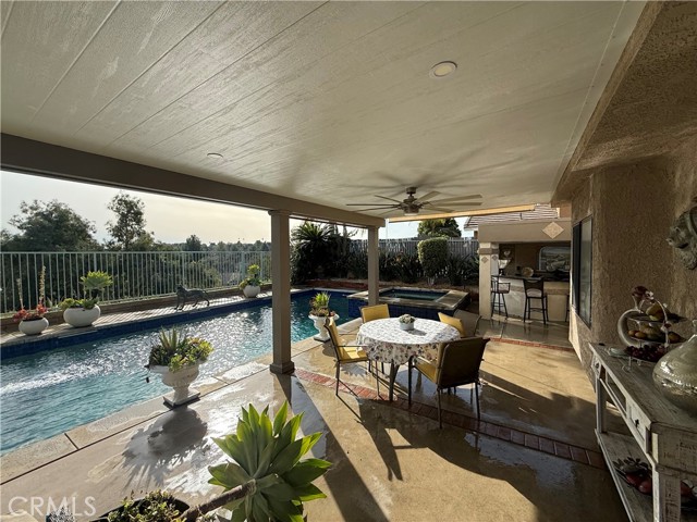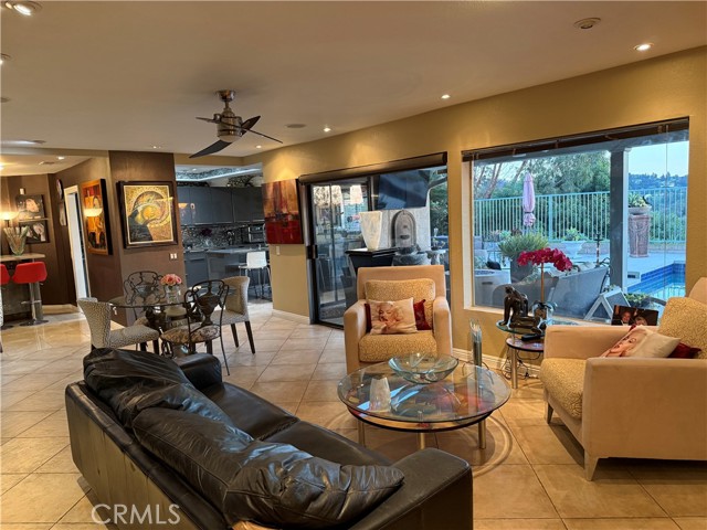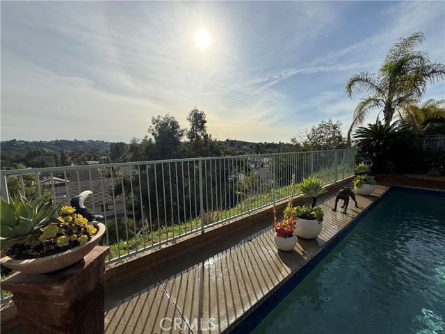 Experience elevated living in this hilltop residence filled with natural light, vaulted ceilings, and panoramic sunset views. Designed for comfort and entertaining, open-concept living spaces flow seamlessly, while expansive windows frame serene vistas and create a warm, inviting atmosphere throughout. The remodeled kitchen is a showpiece, featuring modern gloss cabinetry, quartz countertops, a glass tile backsplash, and stainless steel appliances, including a built-in microwave and five-burner gas range. A large center island with sink and dishwasher offers generous prep space and seating. A charming bay window is perfect for an indoor herb garden, and a sliding glass door leads directly to the covered patio. The main level offers flexibility, including a full bathroom with walk-in shower and a walk-through layout providing convenient access to the second covered patio and pool area. With space that can easily convert back into a downstairs bedroom, complete with bay window and mirrored accent wall. Additional features include a glass-enclosed alcove, double-sided fireplace, and laundry room with abundant storage. Upstairs, the primary suite retreat with vaulted ceilings, two spacious closets (one a walk-in), a built-in nook (currently coffee bar), and balcony access showcasing incredible views. The ensuite bath features dual sinks, a soaking tub, and separate shower. Two additional bedrooms share a Jack-and-Jill bathroom, with one offering direct balcony access. Step outside to a resort-style backyard oasis. Multiple seating areas capture spectacular sunsets, while a pool and spa anchor the space. The primary covered patio includes lighting, ceiling fans, and shade roller curtains. A second covered patio features an outdoor kitchen and eating area. A separate bar, perfect for entertaining. Mature greenery, expansive views, and a tranquil fountain complete this private retreat. The spacious three-car garage offers built-in storage, a sink with prep area, space for an extra refrigerator/freezer, and direct backyard access. Additional highlights include: indoor laundry, ample storage, Wyze doorbell/cameras, a security system with cellular and internet monitoring. Located in the highly acclaimed Walnut Valley Unified School District, with easy access to the 57, 60, and 10 freeways, public transportation, dining, grocery stores, and major retail centers, this exceptional home combines comfort, convenience, and stunning natural beauty. House Repiped 2/26