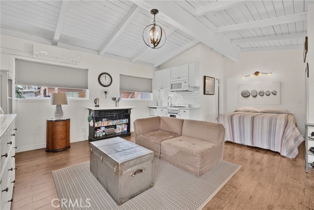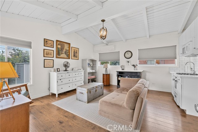 Welcome to Niles St. Updated and versatile, this beautiful property features a 2-bedroom, 1-bath main home in addition to a private studio with its own separate side entrance and yard. The main home opens up to the cozy gas fireplace with an open concept. New carpet in bedrooms, modern hardwood laminate flooring in the living area, white tile flooring in bathroom and a clean fresh coat of interior paint makes this one complete and turnkey. The kitchen adds a sleek modern touch with white cabinets topped with clean white quartz counters. The bathroom offers a soaking tub, a separate newly remodeled stand-up shower along with dual sinks and plenty of counter space. Outback through the double french doors the private studio is a large area with decorative vaulted ceilings and plenty of windows for natural lighting and an open and airy feel. The studio includes a fully functional kitchenette, a fully updated 3/4 bathroom, and its own mini-split system for personal comfort. *Additional highlights include a newer HVAC system, newer roof, privacy vinyl fencing, back patio covering and an attached finished garage with direct access to the main home. 2 separate entrances for privacy and independence.