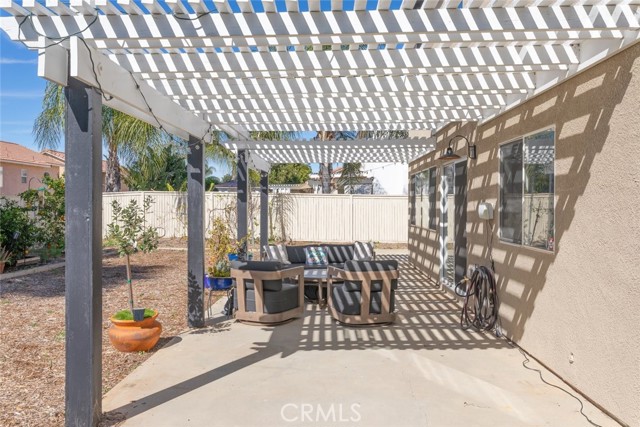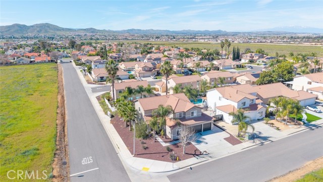 Don’t miss this incredible TURNKEY corner-lot home situated on a large lot with LOW LOW taxes and NO HOA! This beautifully upgraded 4-bedroom, 3-bath, 3-car garage residence delivers the perfect combination of style, comfort, and functionality, including a convenient main-floor bedroom and full bathroom ideal for guests, extended family, or a private office setup. From the moment you arrive, you’ll notice the exceptional curb appeal, manicured exterior, and clear pride of ownership that make this home stand out. Step inside to soaring ceilings, abundant natural light, and a bright, open layout thoughtfully designed for both entertaining and everyday living. Recent upgrades include newer interior and exterior paint, luxury wood flooring throughout the main living areas, brand-new carpet upstairs and on the staircase, and fully updated bathrooms featuring new plumbing, modern vanities, stylish lighting, new toilets, and updated blinds throughout. The formal living and dining rooms impress with dramatic volume ceilings and oversized windows that flood the space with natural light, creating an inviting atmosphere for gatherings or quiet evenings at home. The open-concept kitchen and family room provide a true great-room experience anchored by a cozy fireplace. The upgraded kitchen showcases quartz countertops, newer stainless steel appliances, oversized sink, ample cabinetry, walk-in pantry, and contemporary finishes that make both cooking and hosting effortless and enjoyable. Upstairs, the spacious primary suite retreat offers a private sitting area, separate soaking tub and shower, dual vanities, and a large walk-in closet designed for comfort and convenience. Two additional bedrooms are generously sized and share a well-appointed hallway bathroom with dual sinks and a tub/shower combo, making daily routines easy. Step outside to an expansive backyard featuring brand-new landscaping and a covered patio, creating the perfect setting for relaxing evenings, weekend BBQs, or entertaining. The corner-lot location adds privacy and flexibility, offering additional outdoor space and potential for personalization. Ideally located near schools, shopping, Menifee Marketplace, restaurants, parks, and quick access to the 215 freeway, this move-in ready home truly checks every box — upgrades, layout, location, and value. Homes with this level of care, features, and condition are rare, making this a fantastic opportunity you won’t want to miss.