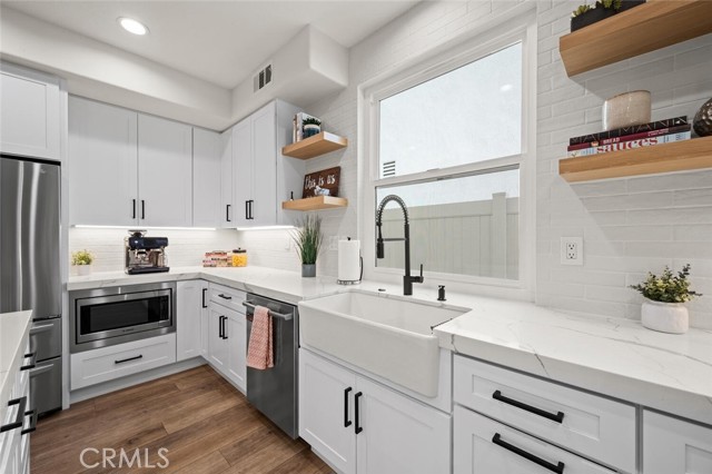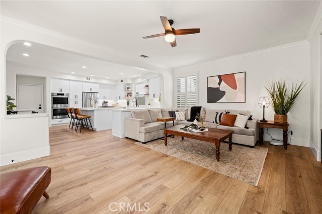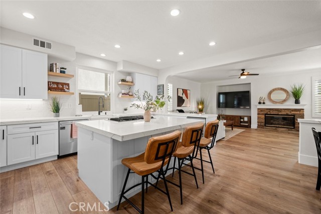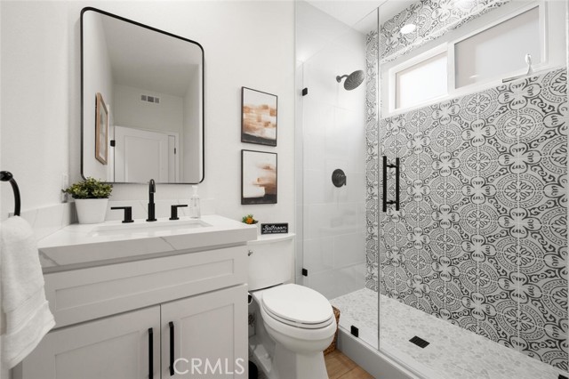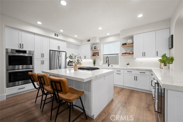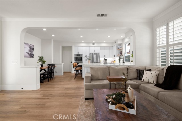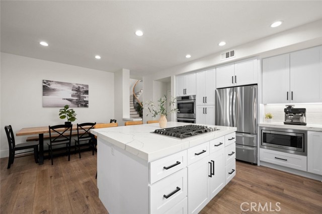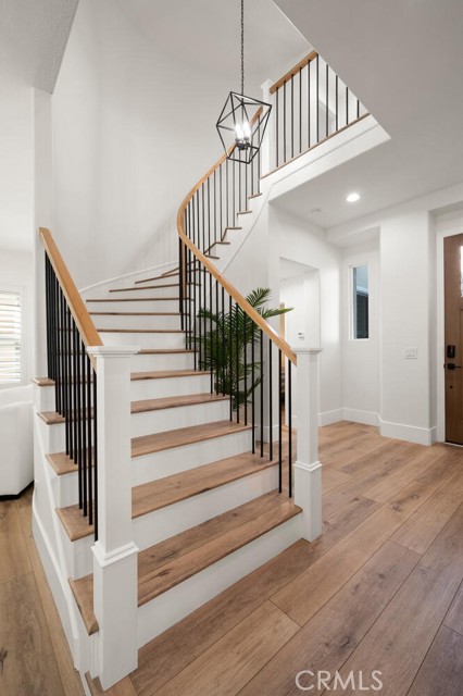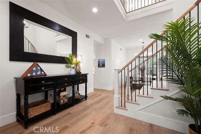 Welcome to one of Rancho Santa Margarita’s most impressive home inside a private gated community, just minutes from RSM Lake and surrounded by award-winning schools. With a low HOA and low tax rate, this home offers the rare combination of luxury, privacy, and long-term value. From the moment you walk through the brand-new custom front door, you’ll feel the difference. Every detail has been thoughtfully upgraded to create a clean, modern look that feels like a professionally designed model home. The entire interior showcases luxury vinyl plank flooring throughout, paired with 8-inch baseboards, fresh interior paint, and updated lighting for an elevated finish. The floor plan is both expansive and versatile, offering 5 bedrooms and 4 full bathrooms, including a highly desirable main-floor bedroom with direct access to a full bath; perfect for guests or extended family. At the heart of the home is a massive open kitchen designed for gathering. Featuring white shaker cabinetry, quartz countertops, a farmhouse sink, newer appliances, and an oversized island, the space flows seamlessly into the family room and dining area, highlighted by custom wainscoting. It’s bright, open, and built for entertaining. Ascending up the stairs completed with new railing, you’ll find four additional bedrooms, all finished with matching LVP flooring, upgraded bathrooms with custom shower doors, and a beautifully remodeled laundry room. A spacious loft provides flexibility for a media room, office, or can easily be converted into a 6th bedroom per the original builder option. The primary suite occupies its own quiet wing of the home, creating a true retreat. Enjoy dual walk-in closets, a soaking tub, and a separate walk-in shower — a private space designed for relaxation. Step outside and you’ll see the care continues. The backyard has been completely redesigned with artificial turf, vinyl fencing, and an Elite-Wood Ultra insulated patio cover complete with recessed lighting and a ceiling fan — creating a comfortable, year-round outdoor living experience. For added peace of mind, the home has been fully repiped, every window fitted with new Milgard windows, a new garage door, and fresh exterior paint. Simply put, it feels new — because nearly everything is. Homes with this level of finish, space, and location inside a gated Rancho Santa Margarita community rarely come available. This is the kind of property that checks every box; style, function, and location; all in one.