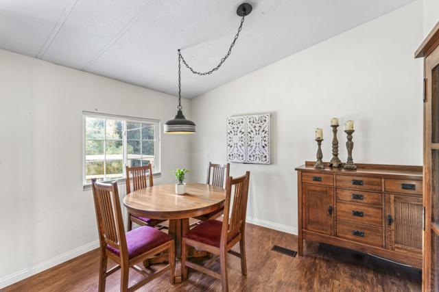 This is a very well maintained 2 bedroom, 2 bath manufactured home in the beautiful community of Pine Valley. The house sits on the highest point of .42 acres. It offers a concrete driveway with ample parking for RV's and extra cars, a covered patio in the back and a big freshly painted deck out front, perfect to watch sunsets from. There is an attached 1 car garage with lots of extra workshop space, and also serves as the laundry room. Brand new blinds, and a safe bolted into the foundation in the garage. There are ember proof vents throughout the home and exterior eaves are enclosed with hardy board. Newer windows, newer exterior paint. The yard has ample room to add an ADU or workshop out front. Property is completely fenced and the roof was done in 2018. There are 6 fruit tree's located on the lot with plenty of room to create a garden or bring your chickens! This is a great starter home for a first time buyer, its move-in ready! It is located on Buckthorn Trail, which is set back from the main road. Home sells AS-IS. Professional photos coming soon.