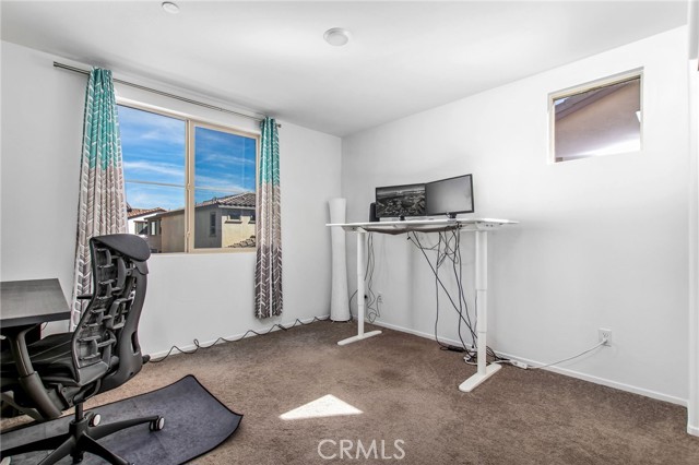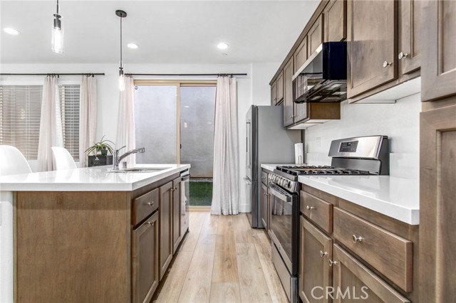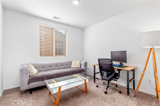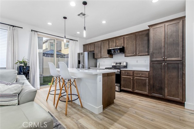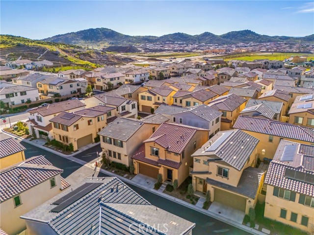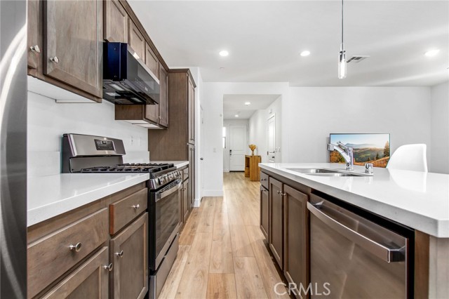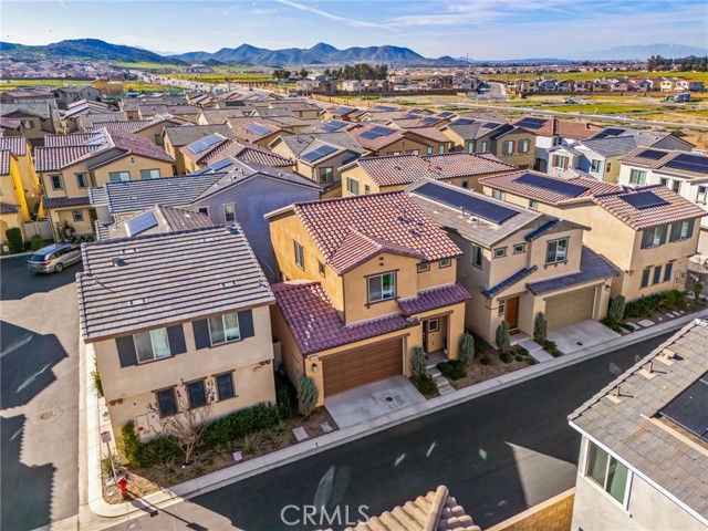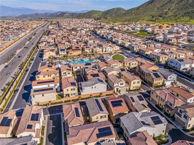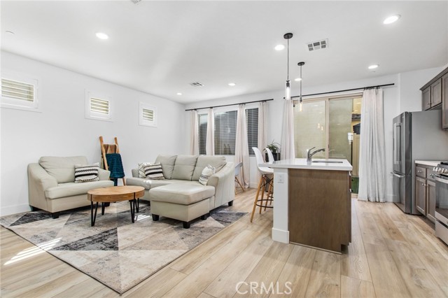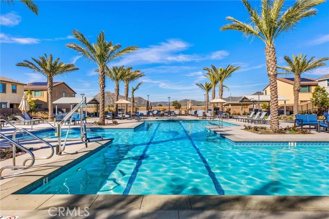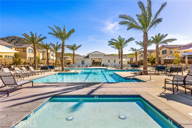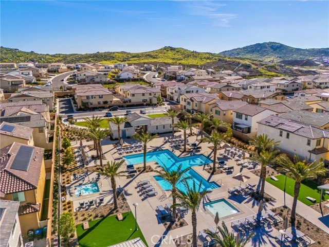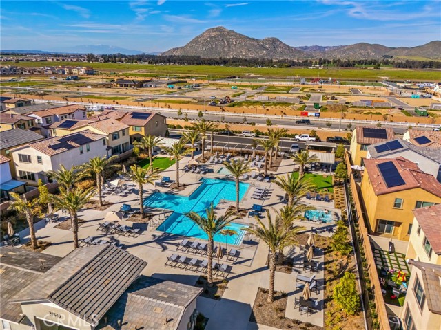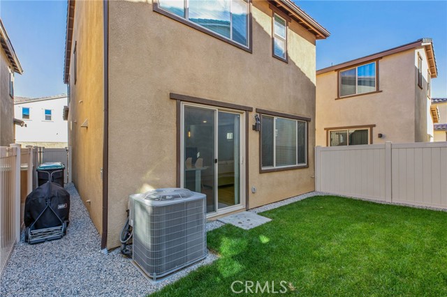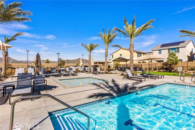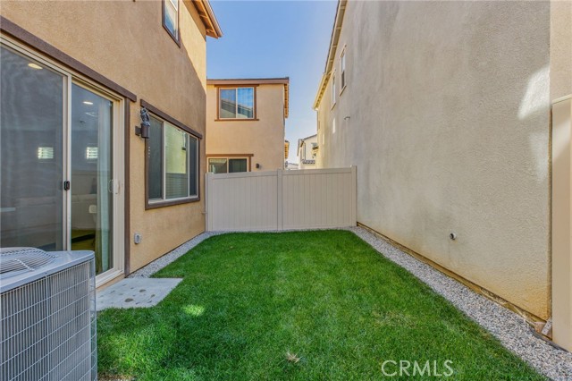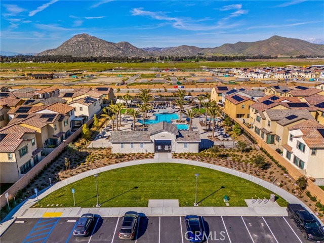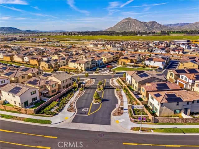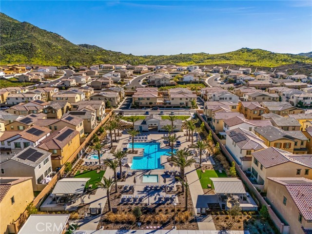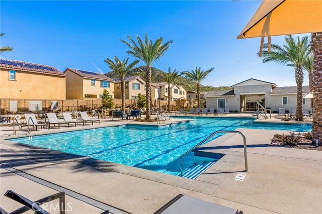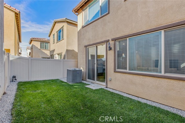 Welcome to this stylish 3-bedroom, 2.5-bath condominium in Copper Skye gated community with two secure private entrances. Nearly 1,400 sq. ft. of thoughtfully designed living space features an open floor plan with vinyl plank flooring, abundant natural light, and quality finishes throughout. The kitchen is a focal point with elegant cabinetry, quartz countertops, and a generous center island ideal for meal prep and gatherings. Custom interior shutters on first-floor mini wall windows add refined detail to the living spaces. A direct connection to your private, eco-friendly patio offers a rare combination of natural grass and low maintenance surfaces perfect for outdoor seating, pets, casual play, grilling, or quiet evenings. Upstairs, the three bedrooms are well-sized with walk-in closets and carpeting, and a conveniently located laundry area with linen closet enhances everyday ease. Included are professionally produced 3D tour, video tour, and floorplan media to showcase flow and spatial relationships. Community amenities include a brand-new resort-style pool and palm-lined common areas maintained by HOA for leisure and social opportunities. The low HOA and tax structure enhances value and convenience. Nearby places for everyday needs and recreation include Winchester-Domenigoni Community Park, Conestoga Park, Lake Skinner Recreation Area, and neighborhood green spaces. Daily errands are supported by nearby French Valley Village Center grocery and retail options, Grocery Outlet, Stater Bros. Markets, Winchester farm market and swap meet, and additional services. This property offers a blend of indoor comfort, outdoor enjoyment, community lifestyle, and proximity to shopping, recreation, and open space, a compelling opportunity in Winchester.