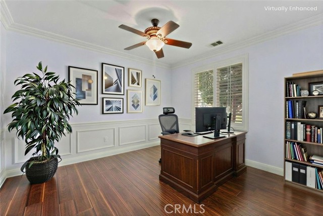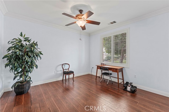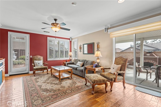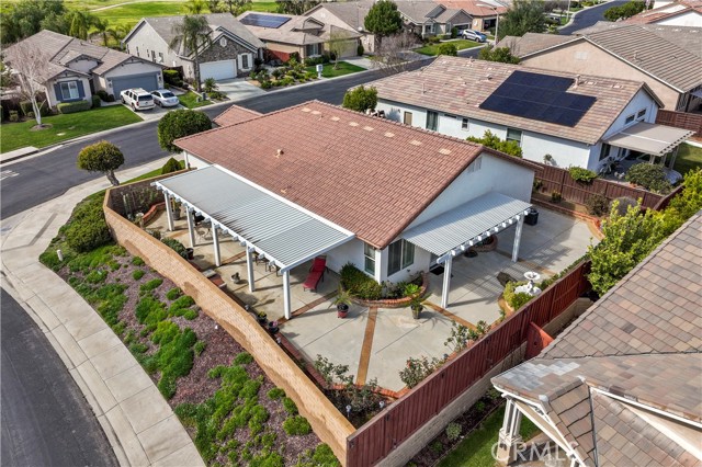 Discover a meticulously maintained home on a desirable corner lot in Hemet’s premier Four Seasons Over 55 community. This spacious, single-story residence offers comfort, low maintenance, and vibrant social opportunities all in one. With 2 bedrooms, 2 baths, a separate dining area, and a versatile office/den, it’s perfectly suited for effortless, lock-and-leave living. HIGHLIGHTS - Prime corner lot with great curb appeal and easy-access side yard - Open great room with built-in entertainment center, slider to the side yard, and direct door to the backyard - Elegant finishes throughout: wood floors, plantation shutters, crown molding, and ceiling fans in every room - Kitchen features wood cabinetry, granite countertops, pull-out drawers, and a pantry - Primary suite and guest bedroom/guest bath for comfort and privacy - Garage with epoxy flooring and abundant storage cabinets and shelves - Private outdoor retreat: low-maintenance yard, Alumawood patio cover, tranquil fountain, and a natural gas fireplace - Automated sprinkler/drip system keeps landscaping vibrant with minimal effort COMMUNITY AND LIFESTYLE - 24-hour security and a true resort-style atmosphere - Extensive amenities: Bistro, ballroom, theatre, game room, billiards, library, gym, salon, covered BBQ area, pool, spa, bocce, shuffleboard, tennis, and pickleball - Nearby attractions: casinos, Diamond Valley Lake, Temecula Wine Country - Convenient access to Palm Springs (˜40 miles), San Diego (˜65 miles), and Los Angeles (˜80 miles) This home is perfect for snowbirds, downsizers, or anyone seeking a vibrant, active 55+ community with single-level living and minimal maintenance. Don’t miss your chance to enjoy the Four Seasons lifestyle—schedule a private tour today.