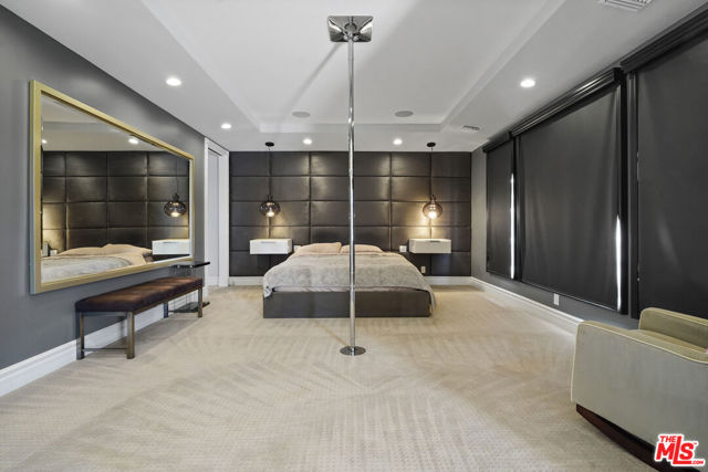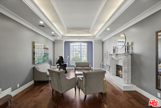 Chateaux Loire, Indian Springs Estates Behind the gates of one of the Valley's most prestigious 24-hour guard-secured enclaves sits an estate that captures the romance of the French countryside and the scale of a true Southern California compound. Set on approximately two acres of lush, park-like grounds, this residence delivers privacy, presence, and architectural elegance rarely offered. From the moment you enter, the home reveals a level of craftsmanship reserved for luxury estates with rich hardwood flooring, custom artisan millwork, dramatic ceiling heights, and curated designer lighting create a warm yet grand atmosphere throughout. At the heart of the home is a showpiece gourmet chef's kitchen, equipped with premium Thermador appliances, custom cabinetry, and striking Carrara marble counters and backsplash. Designed for both entertaining and everyday living, the kitchen flows seamlessly into expansive living and family spaces, all opening through French doors to the resort grounds beyond. The backyard lives like a private retreat: a sparkling pool and spa, statement fountain, fire-pit lounge, outdoor kitchen with BBQ, multiple entertaining terraces, mature fruit trees, and unobstructed views of the Santa Susana Mountains all complemented by a full-size tennis court, creating a true resort experience equally suited for large gatherings or peaceful evenings at home.