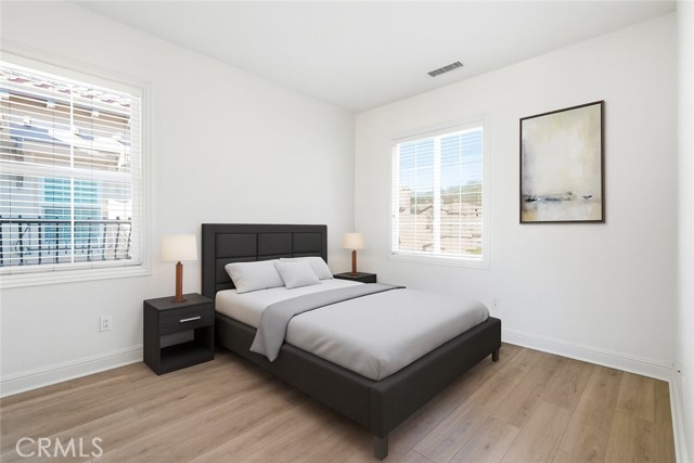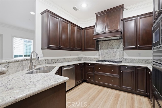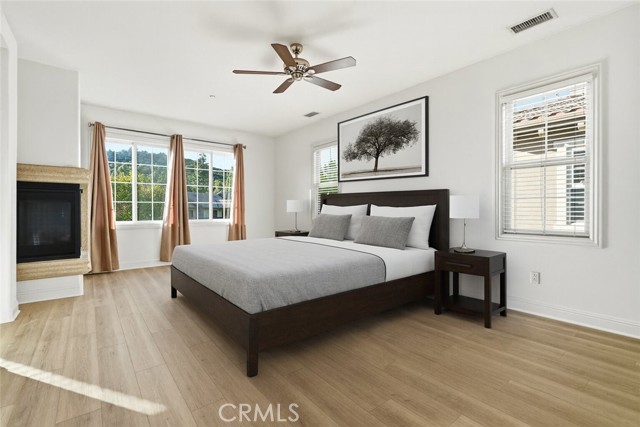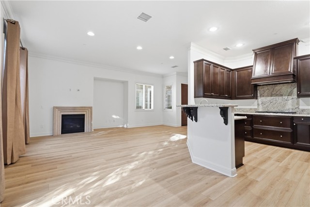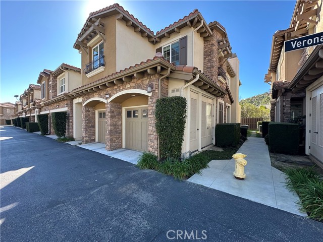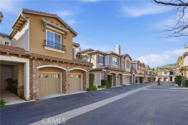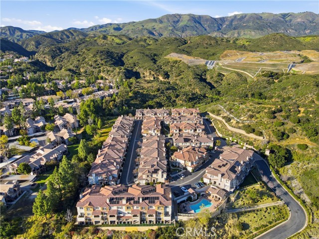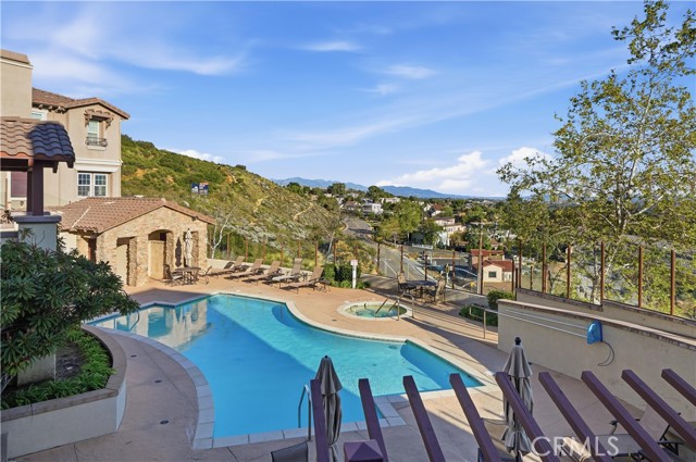Experience sophisticated living in this exquisite Vistas@Indian Oaks end unit, built in 2011. This 3 Bedroom, 3 Bath, 1910 sqft townhome features, new wide-plank vinyl flooring throughout, freshly painted, crown molding, recessed lighting & only 1 shared wall. The gourmet chef’s kitchen is a culinary masterpiece, boasting KitchenAid stainless steel appliances, GE side by side refrigerator with ice & water dispenser. There is a high ceiling living room, with a cozy gas fireplace, which invites relaxation, while the luxurious primary suite offers mountain views and a gas fireplace. The primary bath has a soaking spa, separate shower, double sink, and a large closet. Enjoy effortless luxury with an upstairs laundry room along with plenty of cabinets. There are 2 more ample-sized bedrooms, more mountain views and a 2-car garage with independent doors. The back patio features pristine artificial turf for year-round enjoyment. Nestled within an elite gated community, residents enjoy amenities including a shimmering pool and spa with dramatic city-light views, also the security of earthquake insurance.. Ideally situated moments from hiking, 118 freeway, and close by is the upscale shopping & eating at The Vineyards at Porter Ranch, this home is a rare fusion of comfort and class.