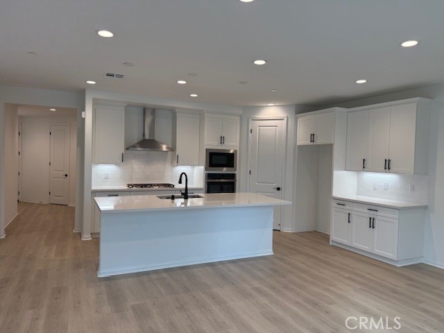 Last opportunity at Legacy in the Braverde masterplan in Menifee. This home is our popular Pearce plan, whose claim to fame is the attached finished RV garage ( 38 ft long, 20 ft. ceiling height) + rear 8ft. RV garage door with access to the backyard, in addition, there is a 2 car garage attached. Endless possibilities, RV, extra storage, a home gym, long truck, van, trailer, boat, the list is endless!! This 4 bed/3 bath + LOFT home is filled with high end appointments such as; charming front porch, White cabinetry throughout, matte black hardware, quartz countertops in kitchen + full tile backsplash w/under cabinet lighting, GE stainless steel appliances including a vent hood, microwave, 5-burner GAS cooktop and dishwasher. Flooring includes wood laminate on the main level, 12 x 24 tiles in all bathrooms & laundry, plus upgraded carpet in hallways, stairs, bedrooms & tons of recessed lighting. This home is complete & move-in ready!