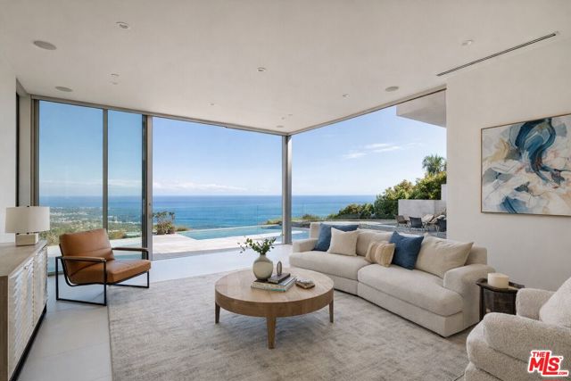 Designed by Anthony Zubick, AIA, this gated contemporary estate showcases refined architectural design and seamless indoor outdoor living. Set in a premier Westside location, the property captures wide open views stretching from Santa Monica Bay to Downtown Los Angeles, offering both privacy and presence. Fleetwood pocket doors slide away to open the main level to sweeping ocean and city views, filling the space with natural light and coastal air. The open layout is comfortable for day to day living and well suited for hosting. The kitchen features Wolf and Miele appliances, generous workspace, and easy flow into the living and dining areas all oriented toward the view. A floating staircase leads upstairs to four secondary bedrooms and a spacious primary suite with two walk in closets, a spa inspired bath, and a wraparound terrace overlooking the coastline. Outside, the flat yard is built for entertaining, complete with a pool, spa, outdoor kitchen, fire pit, and mature landscaping. A three car garage and rooftop deck with panoramic 360 degree views round out the property. A standout architectural home that captures the best of Southern California coastal living.