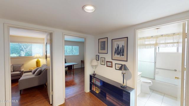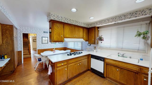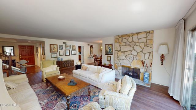 First time on the market! Original owners! This cherished home has been maintained well and lovingly cared for since day one, offering a rare opportunity to own in one of Porter Ranch's most desirable neighborhoods. Situated in a highly sought-after area, the property is zoned for excellent schools, including top-rated Beckford Elementary, Nobel Charter Middle, and Granada Hills Charter High School. Freshly updated landscaping immediately boosts curb appeal, welcoming you to a beautifully presented two-story residence boasting 5 bedrooms, 3 bathrooms, and approximately 2,501 square feet of thoughtful living space. The main level features an open and inviting layout, a spacious kitchen with a convenient peninsula opens to a bright breakfast eating area. Adjacent is a generous living room highlighted by a striking rock-faced gas fireplace plus a formal dining room, both filled with great natural light. Completing the downstairs are two guest bedrooms and a full bathroom perfect for visitors or multi-generational living. Upstairs, the primary suite offers a peaceful retreat with its own private bathroom, while two additional bedrooms share a well-appointed hall bath. Quality details throughout include a mix of hardwood and wood-like flooring, smooth ceilings, recessed lighting, central air conditioning and heating, and more modern comforts. Step outside to a private backyard designed for relaxation and entertaining, an excellent space for gatherings, barbecues, or simply enjoying Southern California's beautiful weather. Don't miss this exceptional, move-in-ready home in prime Porter Ranch. A true gem from original owners who have taken exceptional pride in ownership.