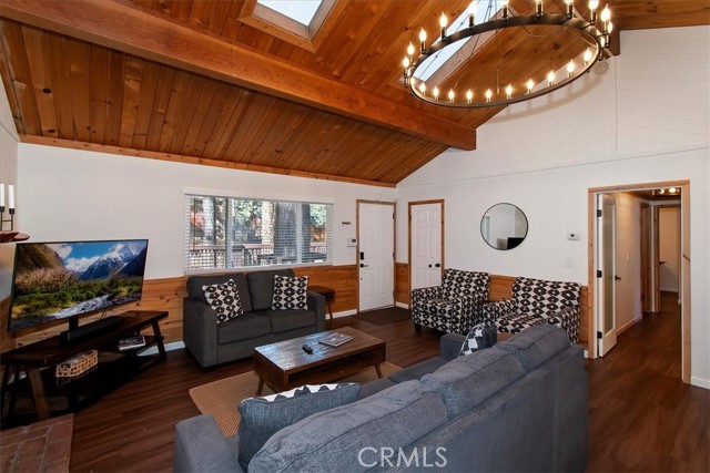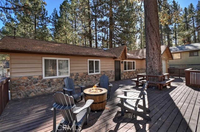 TWO BLOCKS FROM THE BASE OF SNOW SUMMIT! Wait until you see the fabulous location andimmaculate condition of this recently renovated, three-bedroom, two-bath, single-story home with anattached garage in SUMMIT ESTATES. Features include an open kitchen, dining and living room,vaulted ceilings with skylights, T & G wood accents throughout, extensive front and (back-redwood)decking, a cozy used brick fireplace, efficient dual pane windows, central natural gas heating, knottyalser cabinetry, SS kitchen appliances, quartz countertops, Full laundry hook-ups, single oversizedsingle car attched garage, a huge storge shed and a private outdoor spa all on a fenced, 8,250 sq ftlevel lot in high demand area of Summit Estates.