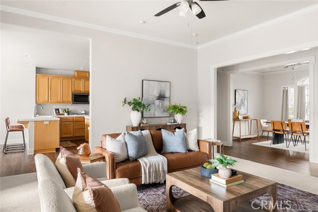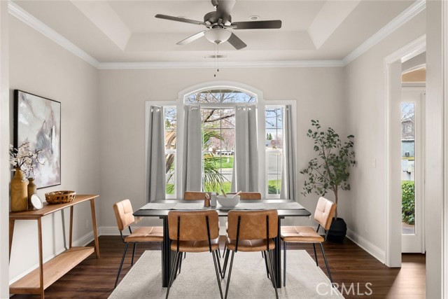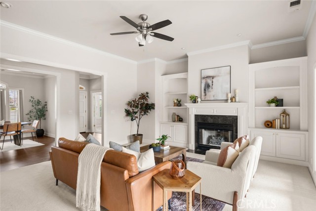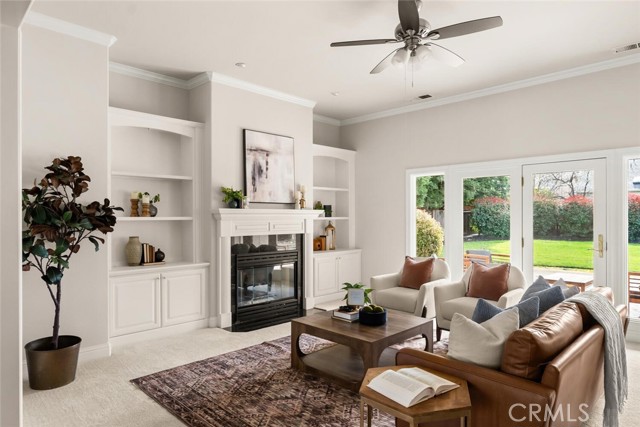 Ideally situated near schools, shopping, and popular dining options, this picture-perfect home offers quality craftsmanship and thoughtful design throughout. Originally built as the builder’s personal residence, it showcases exceptional attention to detail and everything you need for comfortable living. Step inside to discover rich laminate flooring, abundant natural light pouring through numerous windows, elegant crown molding, and a well-designed split floor plan that maximizes every square foot. The spacious living room serves as the heart of the home, highlighted by a stunning fireplace framed by custom built-in shelving and storage. The fully equipped kitchen is ready to impress, featuring warm wood cabinetry, tile countertops, stainless steel appliances, a gas cooktop, a center island with vegetable sink, and a charming breakfast nook, perfect for enjoying your morning coffee. Just off the entry, a private office provides the ideal space to work from home or tackle daily tasks with ease. When it’s time to unwind, retreat to the generously sized primary suite offering a beautiful bay window, private backyard access, a large walk-in closet, and a spa-inspired en suite bath complete with dual sinks, a soaking tub, and a tiled walk-in shower. Additional highlights include ceiling fans throughout, recessed lighting, crown molding, skylights, multiple walk-in closets, and a separate indoor laundry room. The large backyard is designed for entertaining and relaxation alike, featuring a covered patio ideal for barbecues, mature trees for added privacy, and ample lawn space for outdoor activities or pets to roam, with plenty of room to build your dream pool. This exceptional home truly has it all. Don’t miss your opportunity to make it yours!