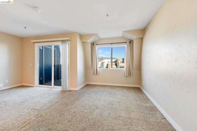 Experience urban living at its finest in the highly sought-after Bridgewater community. This top-floor 565 sq ft studio with in-unit laundry is filled with natural light throughout the day and offers relaxing views of the pool and the East Bay hills. The open floor plan maximizes every inch of space, creating a comfortable and efficient living environment. The updated kitchen features ample cabinet storage, generous counter space, and an eat-in breakfast bar perfect for both everyday living and entertaining. The studio includes a spacious sleeping area with a walk-in closet, along with stainless steel appliances and granite countertops. An outdoor storage closet provides convenient space for seasonal items, and the unit includes one deeded parking space in a gated garage. Residents of Bridgewater enjoy exceptional amenities, including access to EV charging stations, 24-hour security, a fitness center and spa, swimming pool and hot tub, and a recreation room with a full kitchen. Ideally located near grocery stores, restaurants, parks and scenic waterfront trails, this home also offers easy access to San Francisco just 15 minutes away by car and convenient transportation via the free Emery-Go-Round shuttle to BART. Pet-friendly and perfectly situated, this studio won’t last long!