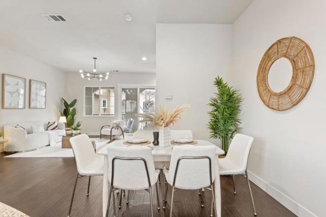 Welcome to this like-new PUD townhome in one of Sunnyvales most convenient and desirable neighborhoods. Ideally located in the heart of the community, this home is nestled within a courtyard surrounded by lush greenery, offering exceptional privacy and a quiet setting. The main level features a gourmet kitchen with a large center island, abundant cabinetry, and stainless-steel appliances, flowing seamlessly into the dining and living areas. A private balcony overlooks serene garden views, perfect for relaxing or entertaining. Upstairs, the primary suite offers a walk-in closet, dual-sink vanity, and spacious shower, complemented by two well-sized bedrooms. On the first floor, a bonus room functions perfectly as a guest room, home office, or gym, creating a potential 4-bedroom layout. Additional highlights include a side-by-side two-car garage with extra storage and a tankless water heater. Low HOA dues of $290 per month cover garbage service, and community amenities include beautifully landscaped courtyards, two BBQ areas, and an inviting fire pit. Conveniently located near major tech employers, making commuting simple and efficient. Enjoy easy access to shopping and dining at Downtown Sunnyvale, as well as convenient public transportation via Lawrence Caltrain Station.