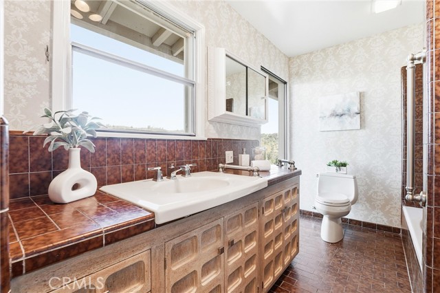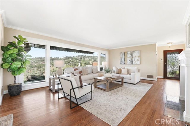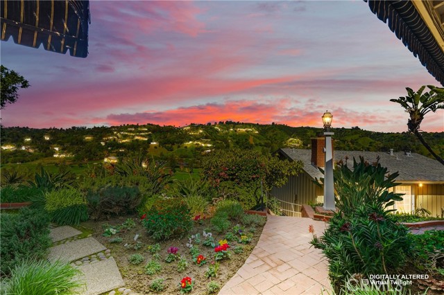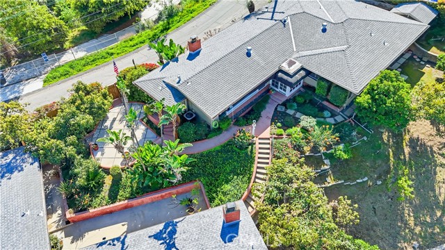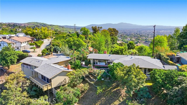 Welcome to 1071 E. Avocado Crest Road, an extraordinary and truly timeless estate nestled in the prestigious hills of La Habra Heights! Built in 1948 and cherished by the same family for three generations, this exceptional property is being offered for the first time since its original construction—a rare opportunity to acquire a home of such heritage, character, and distinction. Set on an expansive 20,836 square foot lot, the residence encompasses 2,846 square feet of thoughtfully designed living space, offering 3 bedrooms and 3.5 bathrooms, including private guest accommodations and an impressive bonus entertaining retreat. The main residence features 2 bedrooms and 2 bathrooms, complemented by an inviting living room, dining room, den, and a kitchen with a charming breakfast nook. Rich in classic details, the home offers abundant built-in storage, graceful natural light, and captivating panoramic views. Gaze north toward the manicured grounds of the Hacienda Golf Club, while southern exposures provide, on clear days, distant views stretching to the Pacific Ocean. A private guest quarters of approximately 477 square feet includes one bedroom and one bathroom, enhanced by generous closet space and stunning golf course views—ideal for extended family, visitors, or a secluded retreat. Adding to the home’s exceptional appeal is a 625 square foot bonus room, showcasing vaulted ceilings, a brick fireplace with hearth, wet bar area, half bath, extensive built-in cabinetry, and a large walk-in closet. Two expansive sliding glass doors open to a sweeping deck, creating an effortless indoor-outdoor setting overlooking the surrounding hills and fairways. The grounds are equally remarkable, offering multiple outdoor living spaces designed for privacy and relaxation. Mature landscaping frames a flourishing collection of producing fruit trees, including 17 avocado trees, 3 orange, 2 grapefruit, 1 blood orange, 1 lime, 1 lemon, 1 Meyer lemon, and 1 persimmon—creating the ambiance of a private orchard. Additional features include a two-car detached garage, an oversized driveway, covered carport parking for up to four vehicles, and two separate storage areas, including a cellar-style space. Seldom does a home of this caliber, history, and setting become available. With enduring charm, breathtaking views from nearly every room, and an unparalleled sense of legacy, 1071 E. Avocado Crest Road is a truly exceptional offering not to be missed.