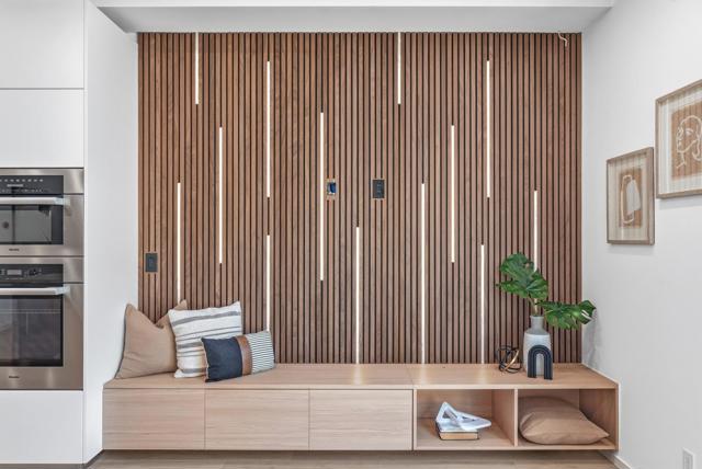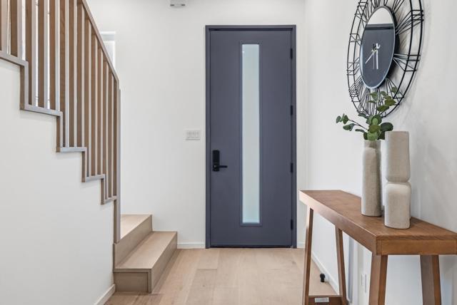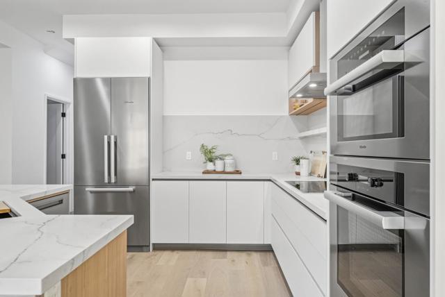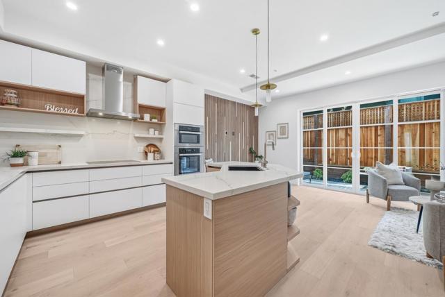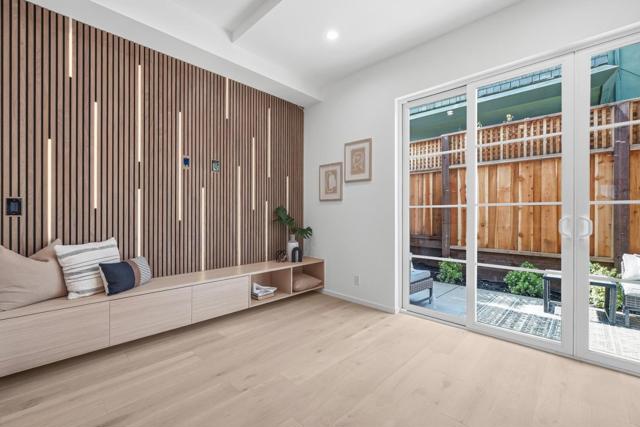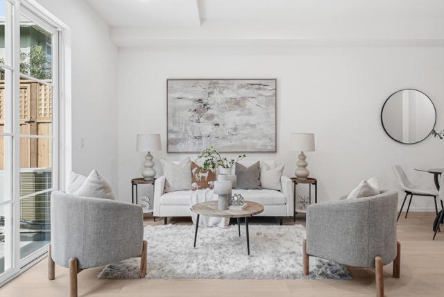 Welcome to this newly constructed luxury townhome offering high end modern living just four blocks from downtown Los Altos shopping and dining. Thoughtfully designed with an open-concept layout, the living, dining, and kitchen spaces are seamlessly connected and framed by beautiful glass doors that flood the home with natural light. At the heart of the residence is a gourmet chefs kitchen, impeccably appointed with premium Miele appliances, a built-in wall oven, and custom cabinetry featuring integrated task lighting and sleek recessed LED accents. The spacious family room and dedicated dining area flow seamlessly to a private backyard, the perfect setting for morning coffee or an evening retreat. This home is equipped with an exceptional suite of modern amenities, including an owned solar system, dual zone HVAC with Nest thermostats, hardwired CAT6 networking, a biometric smart lock, and pre-wiring for interior and exterior security cameras, offering both comfort and future-ready convenience. Ideally located near top rated Los Altos schools, major commute corridors, and Silicon Valleys leading employers, this sophisticated residence perfectly balances contemporary design, smart technology, and everyday functionality in one of the most desirable Los Altos neighborhoods.