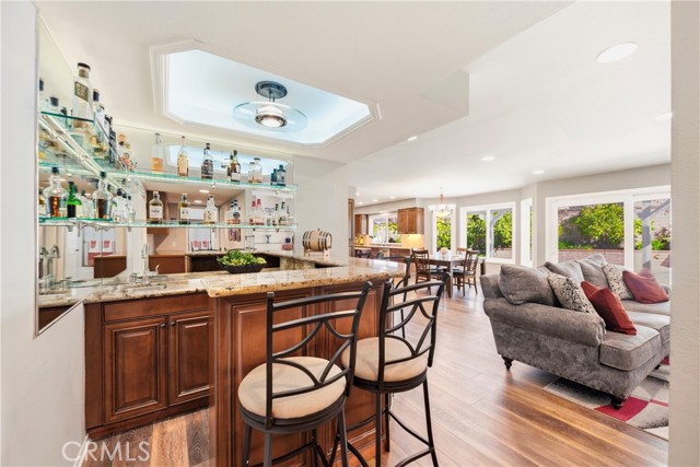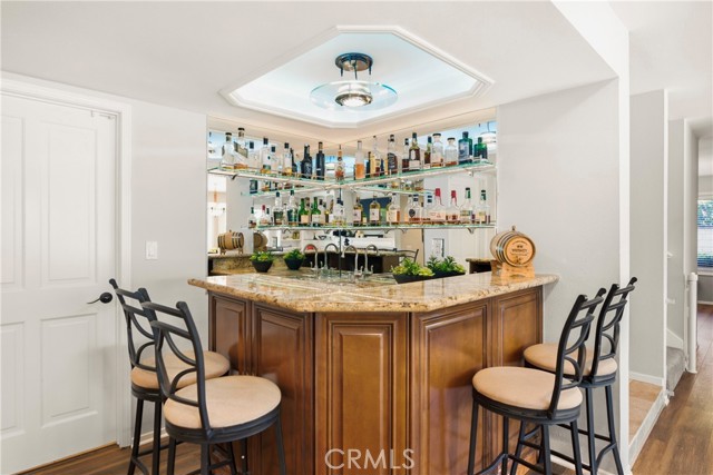 Imagine a morning defined by leisure rather than a rush, where your day begins with a peaceful stroll along Medea Creek. Welcome to the coveted flats of Morrison Estates, a neighborhood designed for connection and convenience. Perfectly positioned on a desirable corner lot along the gorgeous Shadycreek greenbelt, this home offers an idyllic setting for any stage of life. Whether you appreciate the short walk to award-winning schools or simply desire a community where neighbors wave hello and the rhythm of life is relaxed, this is the perfect place to put down roots. When October arrives, you'll especially love the festive magic of Halloween, where the entire community comes together to create a memorable occasion for all ages. Inside, this 5-bedroom, 3-bathroom sanctuary balances a luxurious sense of style with the ease of daily life, having undergone a series of tasteful improvements. Every bathroom has been thoughtfully updated, while beneath the stairs, a temperature-controlled wine cellar waits for the perfect bottle. Nearby, a bar area glows with mood lighting, ready for the soft hum of a dinner party and the perfect evening ambiance. The spacious upstairs primary suite is a retreat unto itself, where a private balcony catches the breeze and a flickering fireplace warms a bonus space meant for morning coffee or a quiet seating area. A well-appointed downstairs bedroom offers a quiet corner for visiting guests or a private home office for remote work. Finally, the back door slider opens to your own private yard of avocado, grapefruit, and lemon trees. The air smells of citrus blossoms, and the pool, secured by a children’s gate, anchors long afternoons of splashing in the sun while the jacuzzi promises endless relaxation and fun beneath the stars. Just beyond the quiet of the greenbelt, the convenience of the neighborhood unfolds with a variety of local shops, restaurants, and grocery stores only minutes away. Whether you're running a quick errand or enjoying a sunset walk along the Medea Creek trail, everything you need is right within reach.