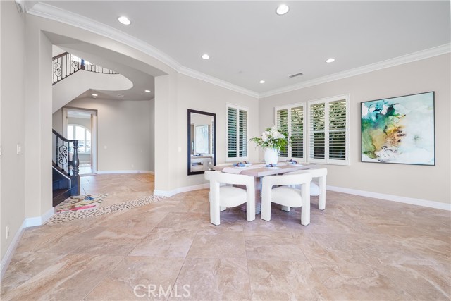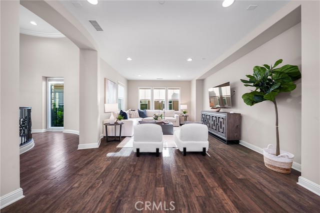 Welcome to 17 Calliope – A Luxurious Retreat built by Toll Brothers with Unmatched *Panoramic Views* in the Prestigious Baker Ranch Community. Discover elevated living in this exquisite 5-bedroom, a large loft and 5.5-bathroom estate, offering 4,224 sq ft of thoughtfully designed space with upgraded floorings. Perched on a premium lot with sweeping panoramic views, this home seamlessly blends modern elegance with exceptional functionality. Step through the grand foyer, where soaring high ceilings and a striking circular staircase make a dramatic first impression. The open-concept layout is enhanced by 2 glass bi-fold doors, creating a seamless transition between indoor and outdoor living. Relax and entertain year-round under the covered California room with built-in BBQ while soaking in breathtaking sunset vistas. The gourmet kitchen is a chef’s dream, featuring an oversized island, high-end appliances, built-in refrigerator and beautiful backsplash. Its open design flows effortlessly into the living and dining areas—perfect for entertaining friends and family. A private first-floor bedroom with an en-suite bath offers convenience and privacy for guests or multigenerational living. Upstairs, a large loft provides flexible space for a media lounge, playroom, or home office. The luxurious primary suite includes a tranquil sitting area (ideal for a second office), a spa-inspired en-suite bath, and direct access to a spacious covered deck with forever views. Each of the secondary bedroom suites is larger in size and has generous closet space. This open concept ensures comfort and privacy for every member of the household. Upgraded with water softener system, Remote system for roller shades, Plantation shutters, crown molding and more. Living in Baker Ranch means access to world-class amenities including resort-style pools, hiking and biking trails, sports courts, playgrounds, and beautifully maintained parks. Just minutes from the Foothill Ranch shopping stores, Irvine Spectrum and major freeways. This location offers the perfect balance of luxury and convenience.