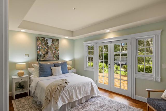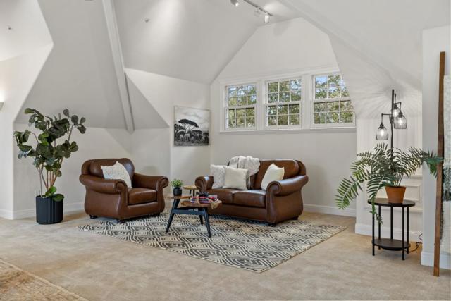 At the end of a meandering driveway, peeking through curved, mossy trunks of California live oak trees, this home makes a clear statement. And the statement is that whoever owns it knows how to enjoy Monterey at its most ravishing. It sits on nearly half an acre of gorgeously cultivated land. And its position far back from the road ensures peace and tranquility for you and your friends as you wander freely through gardens of lavender, white camellias, and fragrant herbs. Feel baby-soft grass beneath your bare feet, standing in your backyard through which a paver walkway winds toward a pergola-covered sitting area with a fire pit. Inside, pitched ceilings lend height to each already-massive room, including a living room, a formal dining room, and a kitchen, each with its own dedicated space, yet connected to one another through a central four-way fireplace with stone accents. Reconnect with your inner chef as you cook on a Viking gas range, grabbing fresh greens from a Sub-Zero refrigerator in a bright kitchen with ample cabinetry and a spacious pantry. Big windows cast glowing sunspots in three bedrooms and an incredible bonus space that forms the entire second story and comes with its own oversized balcony from which to appreciate the entire glorious property spread out below.