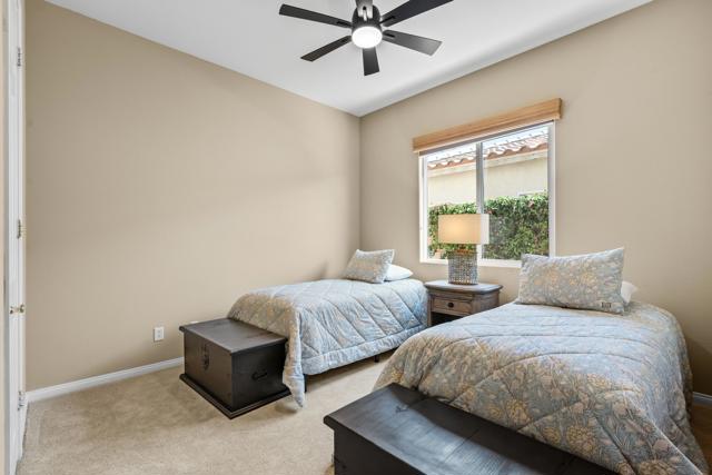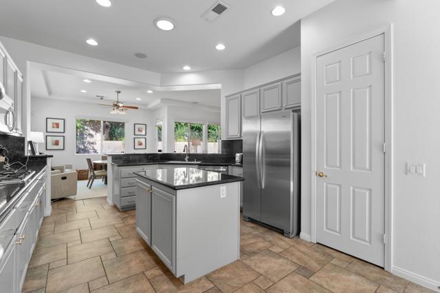 Perfectly positioned within the sought after enclave of La Quinta Del Oro, this beautifully appointed residence offers over 3,000 square feet of refined desert living designed for both ease and elegance. A thoughtfully conceived open floor plan unfolds beneath high ceilings and abundant natural light, creating a seamless connection between living, dining, and entertaining spaces. At the heart of the home, the gourmet kitchen is appointed with stainless steel appliances and generous preparation space, overlooking a spacious great room anchored by a decorative fireplace, ideal for both everyday living and effortless gatherings. The primary suite is a tranquil retreat, complemented by well-proportioned guest bedrooms and a versatile den or office, offering flexibility for today's lifestyle. Outdoors, the home reveals a private resort-style setting rarely found, an inviting pool and spa framed by mature landscaping, a covered patio for shaded lounging, and a sense of seclusion that enhances both relaxation and entertaining. Ideally located near the world class Indian Wells Tennis Garden and moments from renowned dining, shopping, golf, and cultural amenities. A detached casita provides additional privacy for guests or extended stays, completing a property that balances comfort, flexibility, and prime desert positioning. Offered furnished per inventory.