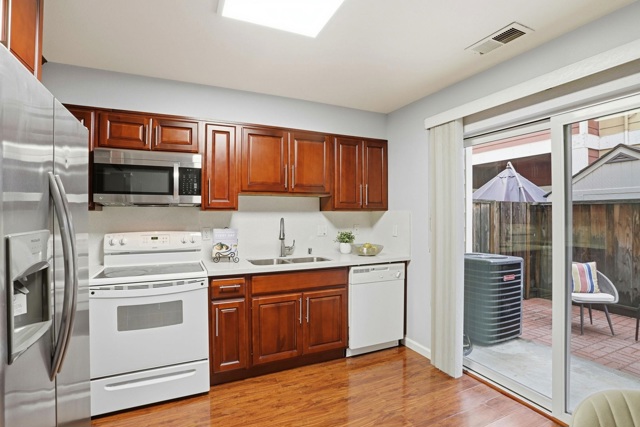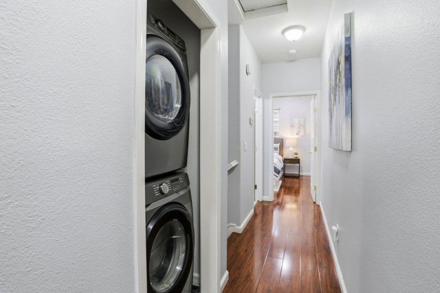 Welcome to a beautifully maintained townhome in a great commute location. This property offers a perfect opportunity for first time home buyers or investors. Located in the heart of Silicon Valley, it boasts 1010 Sq.Ft. of living space, 2 BR | 2 BA. Enjoy the comfort of modern living w/ open floor plan, abundance of natural light from all windows. The thoughtfully designed floorplan flows to the open kitchen and dining area. The kitchen features elegant cabinets, eat-in dining space, and backyard patio access. Sunny primary bedroom upstairs includes high ceilings, ensuite bath and large closets. In-unit laundry and central air conditioning offer convenience. The private backyard patio is perfect for BBQ-ing or enjoying morning coffee. Ideal location in the heart of San Jose, just 3 miles to vibrant Downtown with San Pedro Square Market, SAP Center, restaurants, nightlife, museums, parks & more. Convenient access to freeways, Diridon Station, and public transit for commuter ease to major tech campuses. Two assigned parking spaces. Low HOA dues! Great starter home!