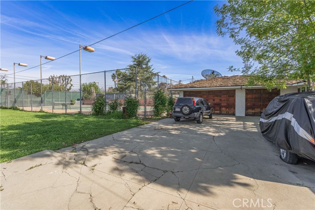 This quiet Covina Hills property is located on a 25,613 sq. ft (.59 acre lot) ALL FLAT LOT with endless possibilities. It features 3 bedrooms, 2 baths. Primary suite with walk-in closet. Large open concept living room connected to the formal dining room. Bonus room and family room with wood beamed ceilings, large fireplace (wood & gas), built-in bbq and large wet bar perfect for entertaining, kitchen with a nook area and custom cabinetry. Attached 3 car garage. You will find an amazing HUGE backyard with a FULL-SIZE lighted TENNIS COURT. Room to build ADU. Close to golf courses/country clubs, shopping centers, restaurants, parks, schools, and easy access to the 10, 57, 60 and 210 freeways. Cal-Poly Pomona University and Mt San Antonio College just few minutes away. Horse property. Circular driveway with ample parking. (.59 acre lot)