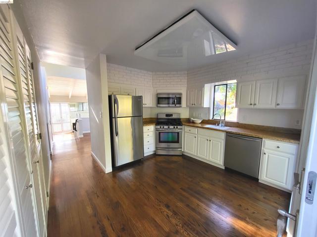Views, views, views of the San Francisco Bay! Updated 2-bedroom, 2-bath townhome with a private and sunny loft, ideal as a 3rd bedroom or home office. A living room with a fireplace, a separate dining room with vaulted ceilings, an updated kitchen with granite counters and stainless steel appliances, a 2-car garage with interior access, ample storage, and a workshop. Common areas include a swimming pool and lush grounds. Close to Pinto Ranch Recreation Area, Leona Heights Park, McCrea Park, and the Oakland Hills Pool and Tennis Club, shopping, and easily accessible to Highway 13 and 580, and the Oakland International Airport. Views: Downtown
