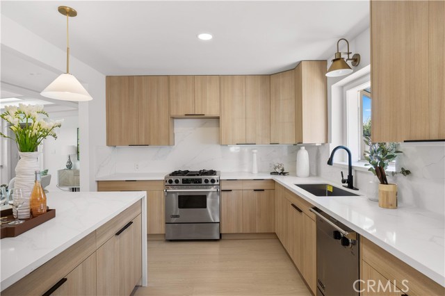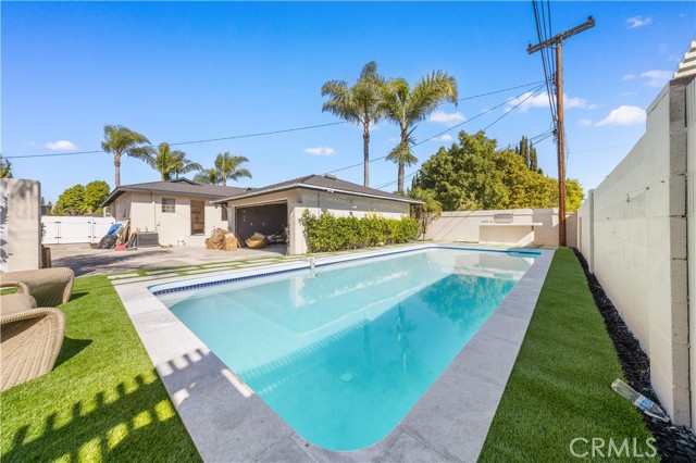 Welcome to 934 E Rose Ave — a fully reimagined single-level residence where thoughtful design, natural light, and modern comfort come together seamlessly. Upon entry, you are welcomed into a warm living room anchored by a sleek fireplace and framed by custom built-in cabinetry, offering both architectural character and functional elegance. Clean lines, wide-plank flooring, and abundant natural light create an immediate sense of calm and home. The layout flows effortlessly into a spacious dining area and a beautifully redesigned kitchen featuring custom cabinetry throughout, minimalist wood finishes, and a generous center island designed for gathering. Every detail has been curated to blend warmth with modern simplicity. Just beyond the dining room is an inviting family lounge highlighted by dramatic double skylights, exposed ceiling beams, and a second fireplace — creating a cozy yet airy retreat filled with natural light. From this family room, sliding access opens directly to a private courtyard, offering a seamless indoor-outdoor connection ideal for morning coffee or evening relaxation. The home features three bedrooms and three full bathrooms, including two spacious primary suites — a rare and highly desirable configuration in the neighborhood. The spa-inspired primary bath showcases a large walk-in shower and a freestanding soaking tub, delivering a true retreat experience. Set on an expansive 8,032 sq ft lot, the backyard is designed for California outdoor living. A long, modern rectangular pool is framed by clean landscaping lines and low-maintenance turf, creating a resort-like setting. A built-in BBQ area at the rear of the yard makes outdoor entertaining effortless. A long private driveway leads to a detached 500 sq ft two-car garage, offering additional flexibility and potential future ADU possibilities (buyer to verify). Fully renovated inside and out, enhanced with smart-home features and custom cabinetry throughout — this is a true turnkey residence designed for elevated everyday living.