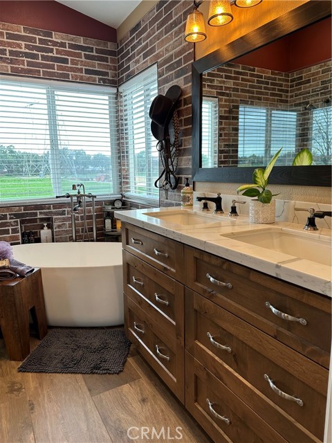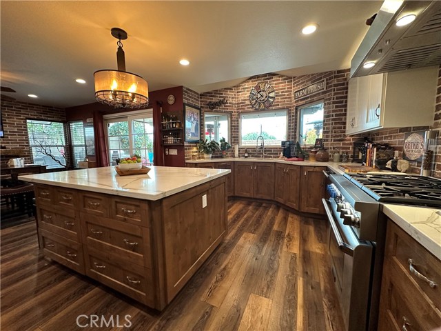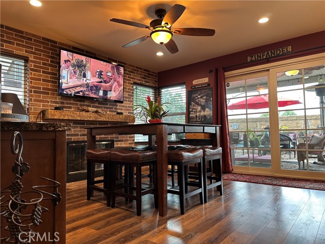 This exceptional 4 beds and 3 full baths home blends timeless Mediterranean design with modern sophistication, offering sweeping farm and mountain views in a peaceful setting. The striking exterior features a custom designer paint palette, elegant Italian-style tile accents, curated stonework, and dramatic wall-wash lighting that creates stunning curb appeal day and night. Inside, the fully remodeled chef’s kitchen is the heart of the home. Designed with an open-concept layout, it showcases a generous quartz island, custom two-tone knotty alder cabinetry, full-height backsplash, under-cabinet lighting, and premium appliances including a Thermador six-burner professional range, Thermador dishwasher, built-in KitchenAid refrigerator, and farmhouse sink perfectly positioned to capture the views. A cozy dining area with a gas-burning fireplace adds warmth and charm, while new flooring throughout the main level enhances the home’s modern elegance. The expansive great room impresses with soaring ceilings and oversized sliding glass doors that create seamless indoor-outdoor living and frame the surrounding mountains. Step outside to your private resort-style retreat featuring a California outdoor kitchen with sink, cooktop, and BBQ, fully plumbed gas fire pit, basalt water feature, expansive paver patio, covered jacuzzi, and RV parking with power hookup — ideal for entertaining or relaxing under open skies. The serene primary suite offers tranquil views and a spa-inspired bath with custom cabinetry and a soaking tub. A vaulted guest suite with a beautifully remodeled bath provides comfort and privacy for visitors. The fully customized three-car garage is truly exceptional. Featuring a professionally installed epoxy flake floor, bold red statement garage doors, designer lighting, and built-in red and black cabinetry with wood countertops, this space functions as both a high-end showroom and practical workspace. Rolling workbenches and extensive wall and overhead storage ensure everything has its place. This remarkable property offers the perfect balance of sophistication, warmth, and functionality — ideal for those who love to cook, entertain, appreciate craftsmanship, and embrace indoor-outdoor living surrounded by natural beauty. Luxury, functionality, and exceptional design come together in this one-of-a-kind property.