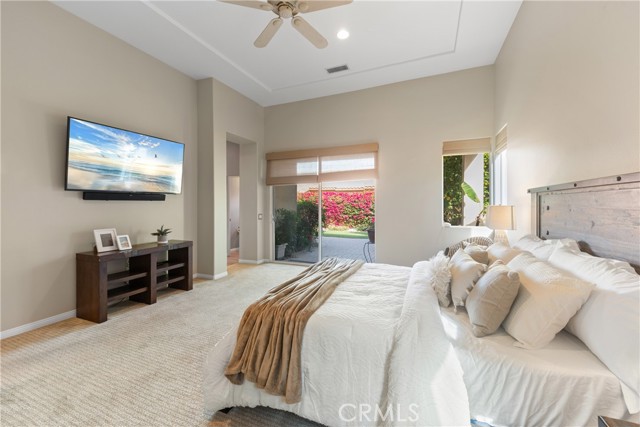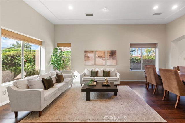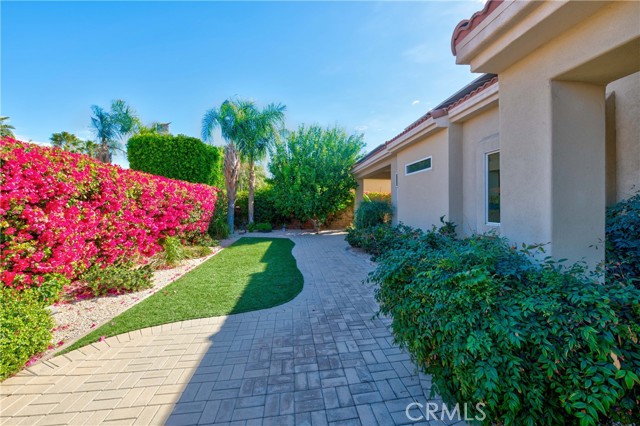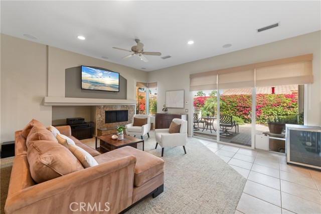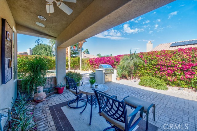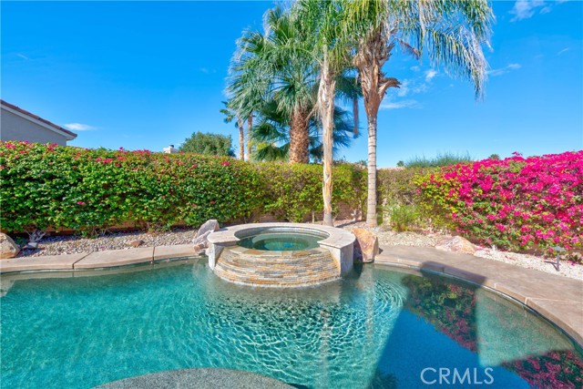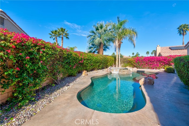 Welcome to this beautifully appointed single-story home in the highly sought-after gated community of Lantana in Palm Desert. This gorgeous and meticulously maintained home is perfectly positioned on a rare, sprawling lot within a peaceful cul-de-sac. This stunning home blends indoor-outdoor living to its finest with an entertainer’s dream backyard, featuring 2,500 sqft, 3 bedrooms, 2.5 baths, and a 2-car garage with lots of storage. The expansive and very private backyard offers a resort-style pool and spa with waterfall, sun patios, mature palm trees, a covered patio with pavers, and a built-in grill all surrounded by impeccably kept lush landscaping with custom outdoor lighting. The interior of this home boasts turnkey condition with soaring ceilings, gleaming wood and tile floors, custom paint and window coverings. The perfect entertaining “great room” has been upgraded with stainless steel appliances, custom backsplash, gorgeous granite countertops, double ovens, and a large center island with bar seating overlooking the spacious family room with cozy fireplace and a view of lush back yard. Your private desert oasis awaits!