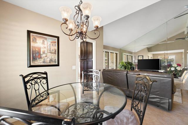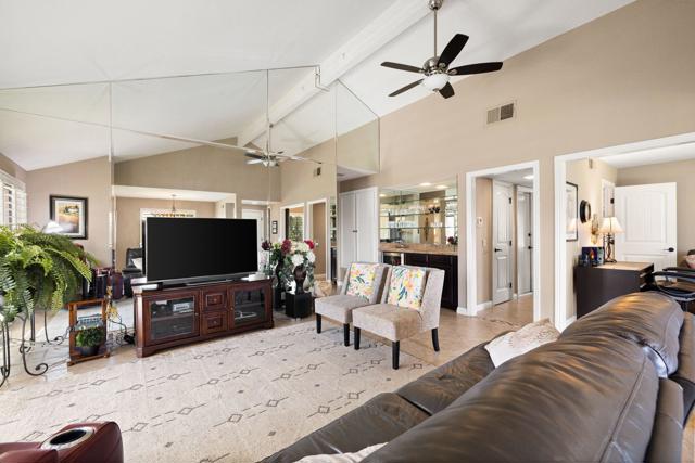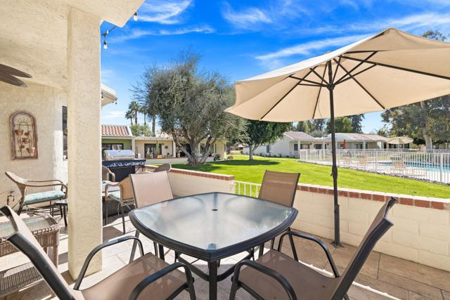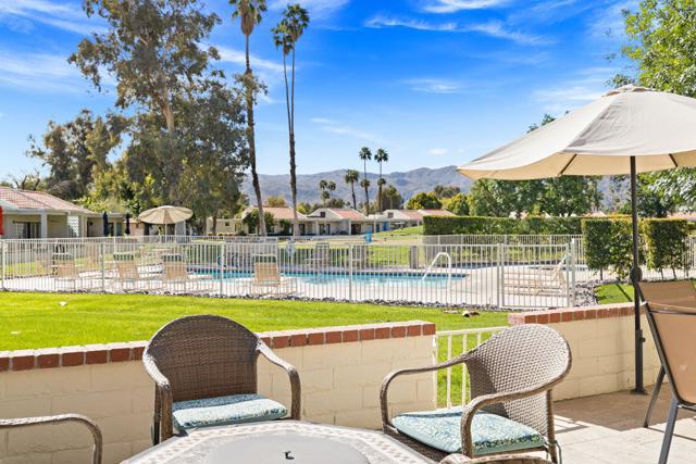 Resort-style living in the gated community of Cathedral Canyon Country Club. This desirable and friendly community offers an array of amenities including clubhouse with casual dining, 18-hole golf course, 10 tennis courts, and 4 pools and spas.This 2 bedroom, 2 bath plus den end unit is being sold turnkey furnished, making it move-in ready or ideal as a seasonal retreat or investment opportunity. The home features vaulted ceilings and an open living area filled with natural light. The spacious south-facing patio offers stunning mountain views and is perfect for outdoor entertaining. Tile flooring throughout and upgraded kitchen appliances add to the home's appeal.Attached two-car garage with ample storage and convenient guest parking nearby.Centrally located near downtown Palm Springs shopping, dining, and entertainment. Close proximity to the new Agua Caliente Casino in Cathedral City off Date Palm Drive.Enjoy the best of desert living in this well-maintained community.