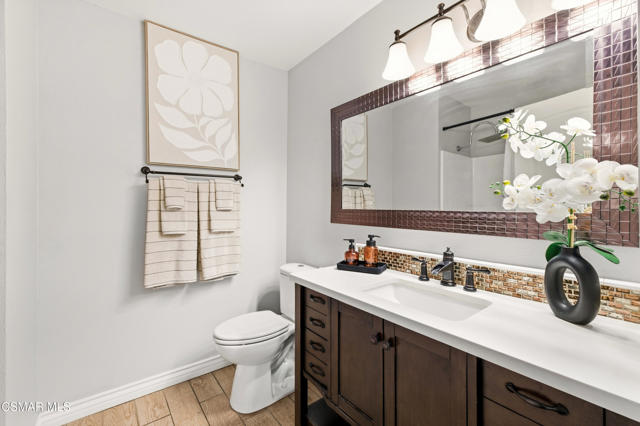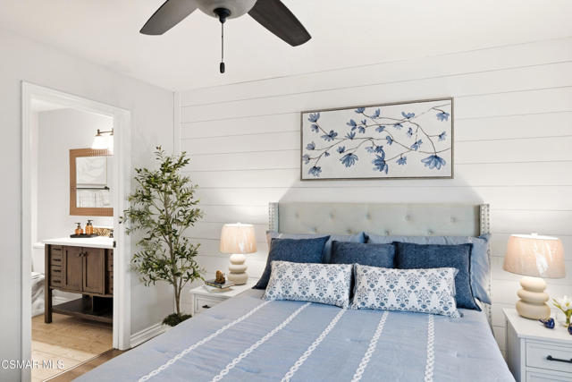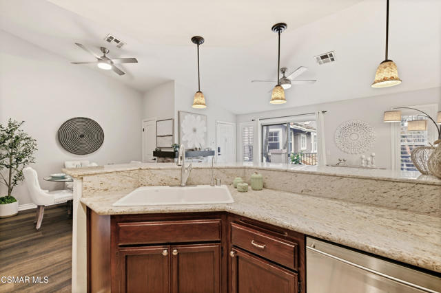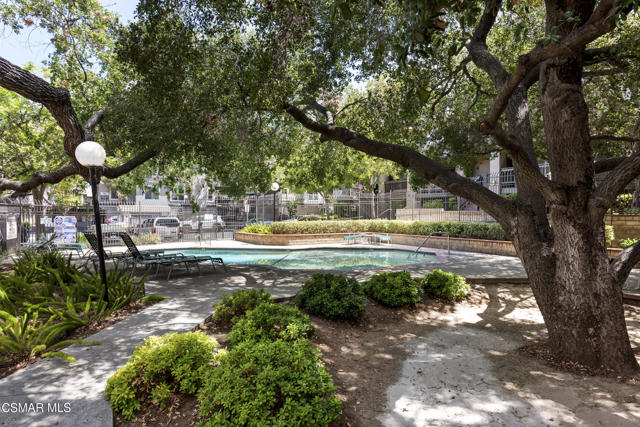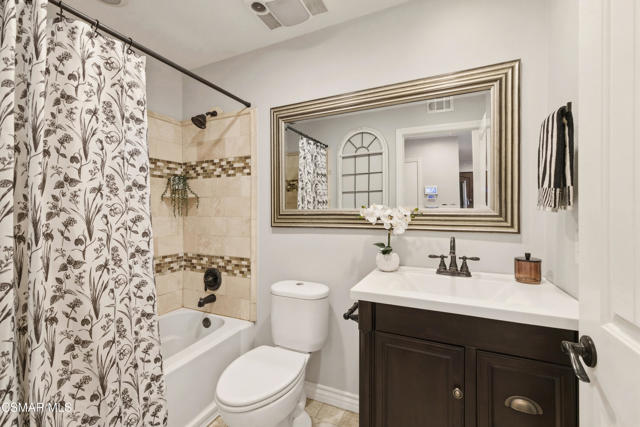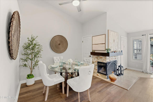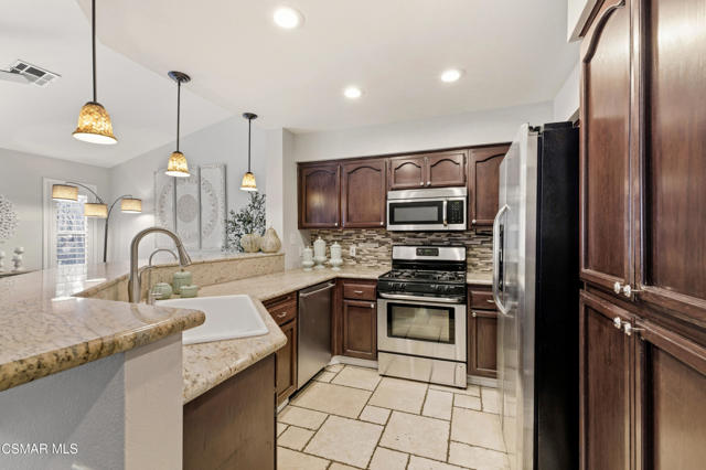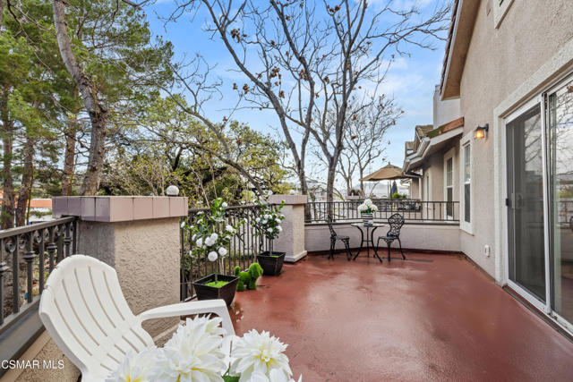 Step into this beautifully updated top-floor, 2-bedroom, 2-bath home featuring soaring ceilings, wood-like flooring, recessed lighting, and a cozy gas fireplace. The open-concept layout offers a spacious living room that flows seamlessly to a large private deck nestled among the treetopsperfect for relaxing or entertaining. The kitchen boasts tile flooring, stainless steel appliances, custom cabinetry, granite countertops, a stylish peninsula with bar seating, and elegant pendant lighting. Both bedrooms feature ceiling fans, as does the family room, while wood shutters throughout provide privacy and a touch of elegance. Bathrooms have been tastefully remodeled with modern vanities and finishes. Additional highlights include double-pane windows, a sliding glass door, and a private 2-car tandem garage. Conveniently located in the heart of Thousand Oaks and Westlake Village, this home offers access to the community pool and spa, plus all the shopping, dining, and outdoor recreation the area has to offer!