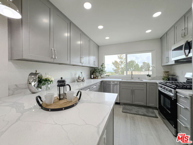 Welcome to the highly desirable Mountain Terrace Community in the City of Montebello! This beautifully remoldled two- story townhome offers a thoughtfully designed and functional floor plan. The main level features 1 bed and 1 bathroom features a walk-in shower, ideal for guests or multi-generational living. Upstairs includes 2 additional bedrooms and a spacious full bathroom. The bright and inviting living room opens to a private balcony showcasing stunning city views. The downstairs bedroom features a sliding glass door leading to a cozy and tranquil patio - perfect for relaxing or entertaining. The updated kitchen boasts new cabinetry and appliances, a stylish countertop with elegant pendant (drop lighting ), and an adjoining dining area filled with natural light. Additional upgrades include new interior paint, new laminate flooring, high ceilings, recessed lighting, and an air purification system for added comfort. Upstairs, 2 bedrooms offer beautiful city views and a full bathroom. Additional features include a 2-car attached garage with a laundry area. Enjoy resort-style living in this quiet, tree-lined community offering a sparkling pool and spa. Conveniently located near major freeways and shopping centers, including Costco, Home Depot, restaurants, department stores, golf courses,s and recreational parks.