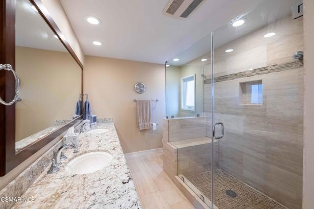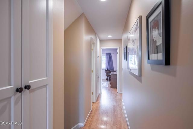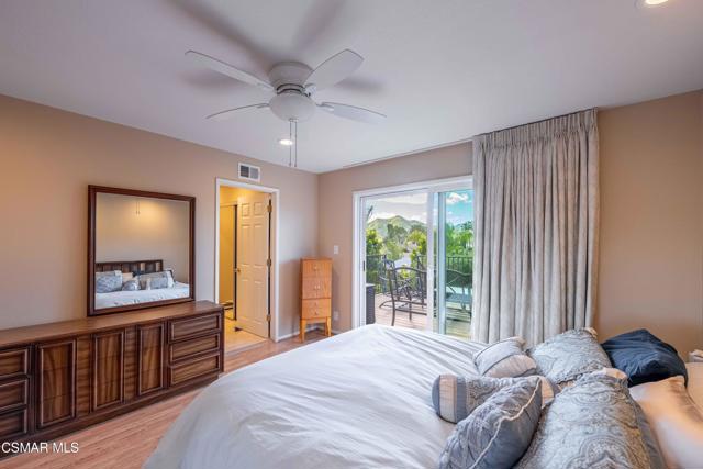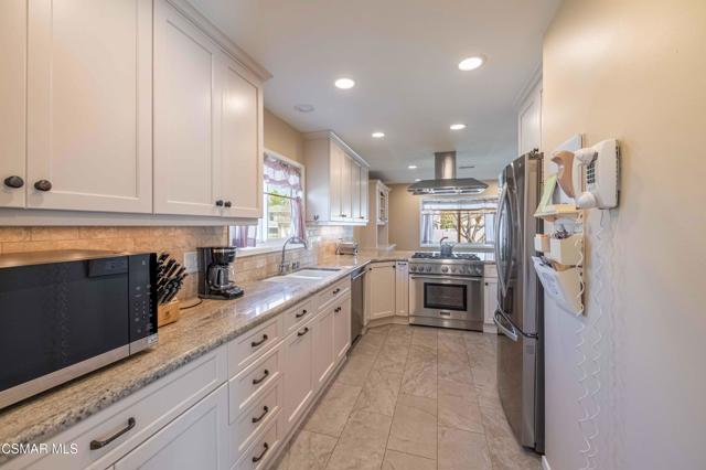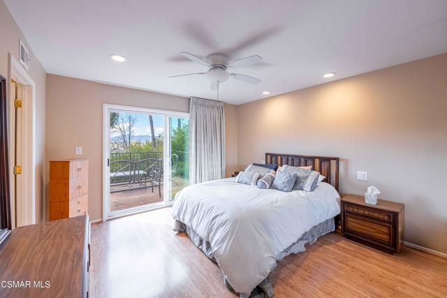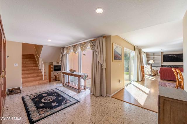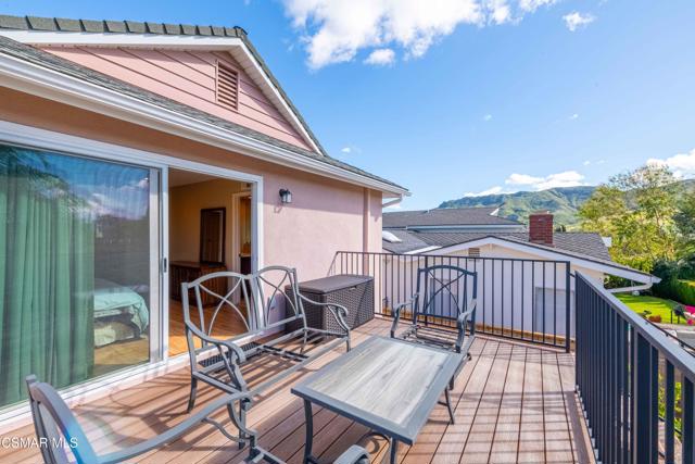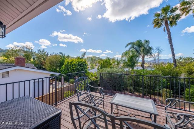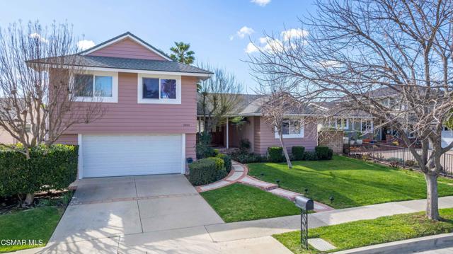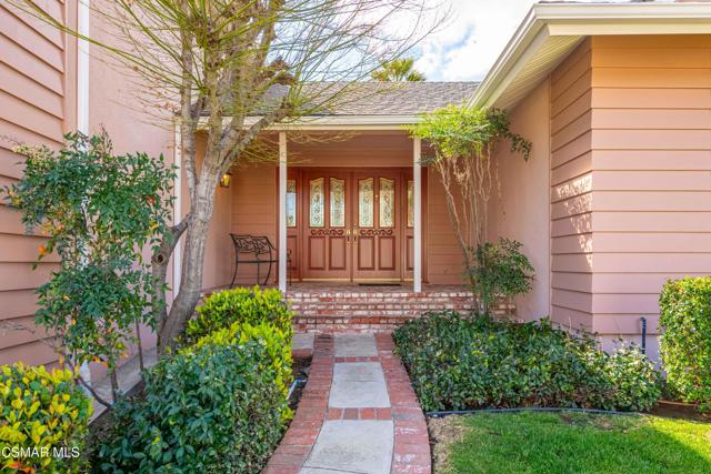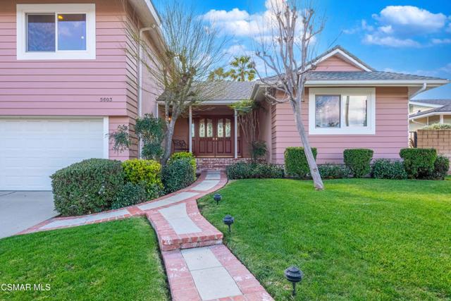 Set in a phenomenal location surrounded by the breathtaking Santa Monica Mountains, this special residence is located in one of Agoura Hills' most desirable neighborhoods. Enjoy a peaceful and private setting just moments from award-winning schools, parks, hiking trails, shopping, dining, entertainment, and only a short drive to the coast. This light and bright home does not have an HOA and features 4 bedrooms and 3 bathrooms with a spacious floorplan of over 2,200 square feet. Large picture windows invite the outdoors in, filling the home with natural light and showcasing gorgeous mountain and city light views from the primary suite and rear deck. A covered and expanded brick entry porch welcomes you into a gorgeous formal entry, setting the tone for the heart of the home. The flexible and versatile floor plan includes an open-concept kitchen with granite countertops and stainless steel appliances, opening seamlessly to the dining and living areas. The spacious living room with fireplace and built-in's offers an inviting space for everyday living and entertaining. All four bedrooms are located upstairs, including a private primary suite retreat. The lower level features a bathroom, wet bar and an expansive entertaining space with direct access to the backyard--ideal for gatherings, a media room, or a secondary living area, possible mother-in-law suite/ guest quarters. All bathrooms have been tastefully upgraded throughout. The outdoor setting is exceptional, with privacy, multiple sitting and entertainment areas, and pristine landscaping. Enjoy peaceful cross breezes and the calm, serene energy of this immaculate, meticulously cared-for home with great bones and pride of ownership. Make this exceptional home at 5603 Rainbow Crest Drive your own!