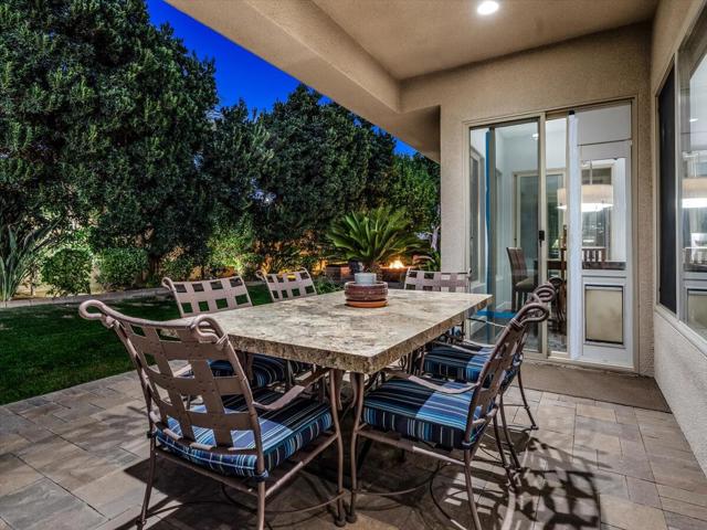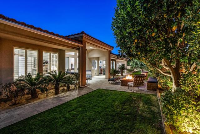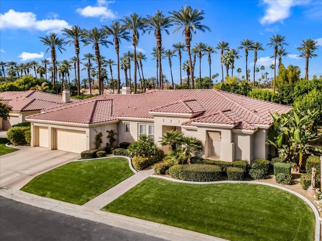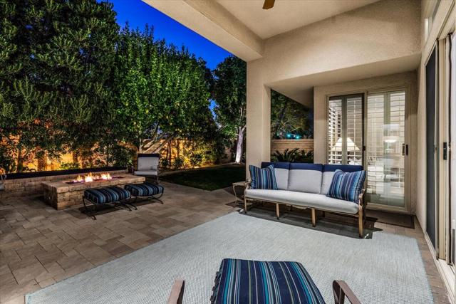 Welcome to refined desert living in the heart of Indian Wells. This centrally located 2,604 sq. ft. residence offers the perfect blend of comfort, style, and sophistication, in one of the desert's most prestigious areas. Featuring three spacious en suite bedrooms, this thoughtfully designed home provides privacy and luxury for both residents and guest alike. Offered fully furnished, the home is move-in ready and beautifully appointed with formal and family living spaces, ideal for both elegant entertaining and relaxed everyday living. Stylish, wood-look ceramic tile flooring flows throughout, complementing the home's modern yet traditional aesthetic. The updated kitchen is a true centerpiece, showcasing the stainless steel appliances with built-in refrigerator, stunning Cambria countertops with waterfall edge, and ample space for gathering and hosting. Every detail has been curated to provide both functionality and refined design. Step outside to a beautifully landscaped backyard retreat. The covered patios are laid with stone pavers, which creates a perfect outdoor area for entertaining. A cozy fire pit serves as the focal point for relaxing under the desert sky. Mature landscaping provides privacy, character and a serene setting. Significant upgrades include a new roof installed in 2024, and HVAC systems replaced in 2019, enhancing both efficiency and long-term value. Whether you're seeking a full-time residence, seasonal retreat or investment opportunity, this exceptional property delivers location, luxury, and lifestyle - all in one remarkable package.